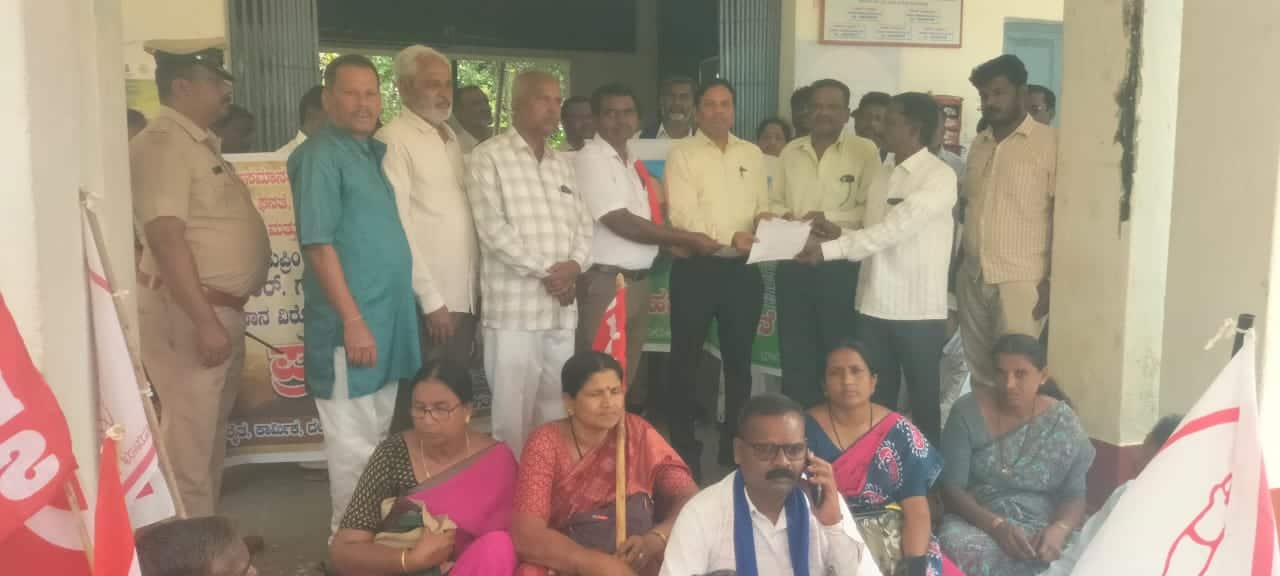 ಸುಪ್ರೀಂ ಕೋರ್ಟ್ ಮುಖ್ಯ ನ್ಯಾಯಮೂರ್ತಿಗಳ ಮೇಲೆ ವಕೀಲ ಶೂ ಎಸೆದಿರುವ ಘಟನೆ ಖಂಡಿಸಿ ದಲಿತ ಹಾಗೂ ವಿವಿಧ ಸಂಘಟನೆಗಳ ಮುಖಂಡರು ಪಟ್ಟಣದ ತಾಲೂಕು ಪಂಚಾಯ್ತಿ ಕಚೇರಿ ಎದುರು ಪ್ರತಿಭಟನೆ ನಡೆಸಿದರು.ಪಟ್ಟಣದ ಪ್ರವಾಸಿ ಮಂದಿರ ಮುಂಭಾಗದ ಡಾ.ಬಿ.ಆರ್.ಅಂಬೇಡ್ಕರ್ ಪುತ್ಥಳಿಗೆ ಮಾಲಾರ್ಪಣೆ ಮಾಡಿದ ನಂತರ ಮೆರವಣಿಗೆಗೆ ಚಾಲನೆ ನೀಡಿ ರಸ್ತೆ ಉದ್ದಕ್ಕೂ ಶೂ ಎಸೆದ ವಕೀಲನ ವಿರುದ್ಧ ಘೋಷಣೆ ಕೂಗುತ್ತಾ ತಾಪಂ ಕಚೇರಿ ಆವರಣದಲ್ಲಿ ಪ್ರತಿಭಟನಾ ಧರಣಿ ನಡೆಸಿದರು.