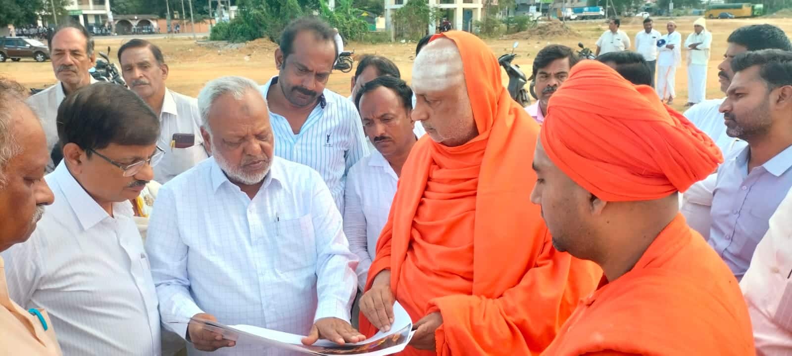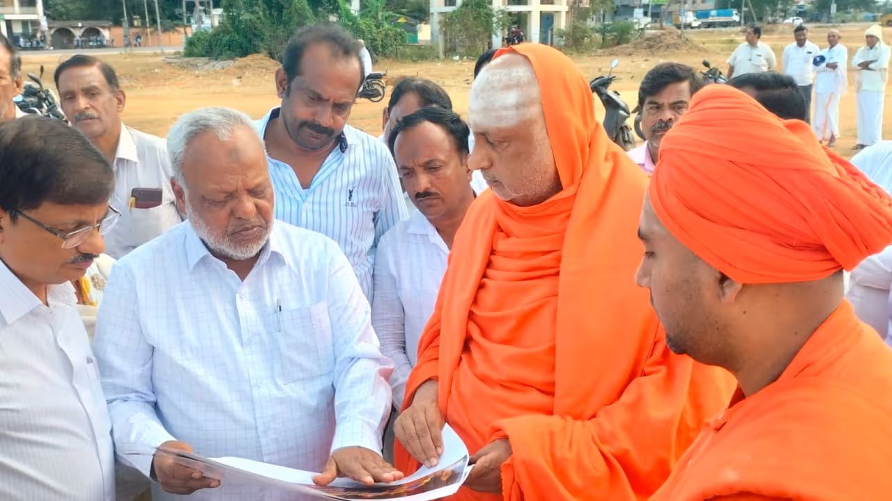 ಮಳವಳ್ಳಿ ಪಟ್ಟಣದಲ್ಲಿ ಡಿ.16ರಿಂದ ಡಿ.22ರವರೆಗೆ ನಡೆಯಲಿರುವ ಆದಿ ಜಗದ್ಗುರು ಶ್ರೀಶಿವರಾತ್ರಿ ಶಿವಯೋಗಿಗಳ 1066 ನೇ ಜಯಂತಿ ನಿಮಿತ್ತ ಸುತ್ತೂರಿನ ಶ್ರೀಶಿವರಾತ್ರಿ ದೇಶಿಕೇಂದ್ರ ಸ್ವಾಮೀಜಿ ಸಭಾ ಮಂಟಪ ನಿರ್ಮಾಣ ಸ್ಥಳಕ್ಕೆ ಭೇಟಿ ನೀಡಿ ವೇದಿಕೆ ನಿರ್ಮಾಣದ ನೀಲಿ ನಕ್ಷೆ ಪರಿಶೀಲನೆ.
