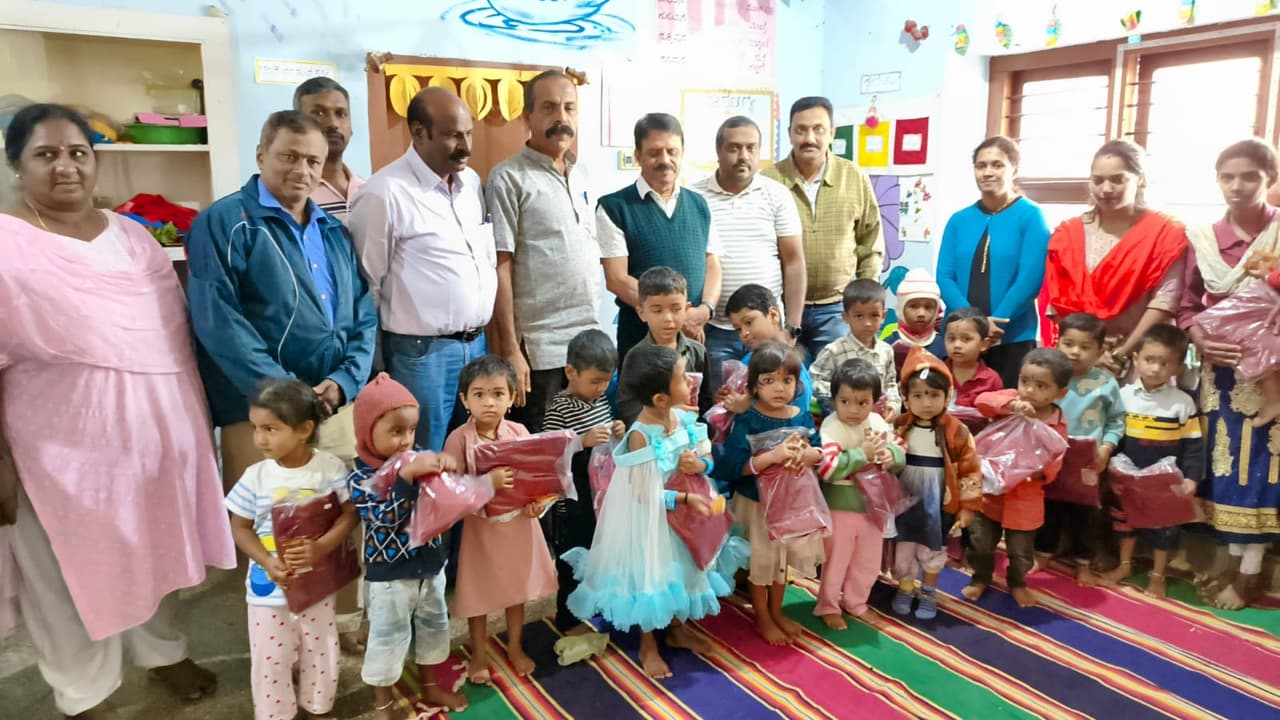 ಕುಶಾನಗರದ ದಂಡಿನಪೇಟೆಯ ಶಿಶುಪಾಲನಾ ಕೇಂದ್ರದ ಮಕ್ಕಳಿಗೆ ಮಾಜಿ ಶಾಸಕ ಅಪ್ಪಚ್ಚು ರಂಜನ್ ಸ್ವೆಟ್ಟರ್ ವಿತರಣೆ ಮಾಡಿದರು.