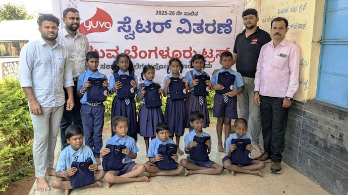 ತಾಲೂಕಿನ ಶ್ರೀರಾಂಪುರ ಕಾಲೋನಿ, ಮೋಟಗೊಂಡನಹಳ್ಳಿ ಸರ್ಕಾರಿ ಕಿರಿಯ ಪ್ರಾಥಮಿಕ ಶಾಲಾ ಮಕ್ಕಳಿಗೆ ಸ್ವೆಟರ್ ವಿತರಿಸಿ ಮಾತನಾಡಿದ ಅವರು, ಚಳಿಗಾಲದಲ್ಲಿ ಮಕ್ಕಳ ಆರೋಗ್ಯ ದೃಷ್ಟಿಯಿಂದ ಸ್ವೆಟರ್ ನೀಡಲಾಗುತ್ತಿದೆ. ಚಳಿಗಾಲದಲ್ಲಿ ಜ್ವರಕ್ಕೆ ತುತ್ತಾಗುವ ಸಾಧ್ಯತೆಗಳು ಹೆಚ್ಚಾಗಿದ್ದು ಇದರಿಂದ ವಿದ್ಯಾಭ್ಯಾಸಕ್ಕೆ ತೊಂದರೆ ಆಗಬಾರದೆಂಬ ಉದ್ದೇಶದಿಂದ ಈ ಕೆಲಸ ಮಾಡುತ್ತಿದ್ದೇವೆ. ನಿಟ್ಟಿನಲ್ಲಿ ಕಿರಿಯ ಸರ್ಕಾರಿ ಶಾಲಾ ಮಕ್ಕಳಿಗೆ ಗುಣಮಟ್ಟದ ಸ್ವೆಟರ್ ವಿತರಿಸುತ್ತಿದ್ದು ಮಾಗಡಿ ತಾಲೂಕು ಸೇರಿದಂತೆ ರಾಜ್ಯಾದ್ಯಂತ 120ಕ್ಕೂ ಹೆಚ್ಚು ಶಾಲೆಗಳಿಗೆ ಸ್ವೆಟರ್ಗಳನ್ನು ವಿತರಿಸುತ್ತಿದ್ದು ಮಲೆನಾಡು ಭಾಗದಲ್ಲೂ ಮಕ್ಕಳ ಆರೋಗ್ಯ ದೃಷ್ಟಿಯಿಂದ ಈ ಕೆಲಸ ಮಾಡಲಾಗುತ್ತಿದೆ. ಸವಾಲಿನ ಹವಾಮಾನ ಪರಿಸ್ಥಿತಿಗಳ ಹೊರತಾಗಿಯೂ ಮಕ್ಕಳು ಆರಾಮವಾಗಿ ಶಾಲೆಗೆ ಹೋಗಬಹುದು ಎಂಬುದು ನಮ್ಮ ಟ್ರಸ್ಟ್ ಆಶಯವಾಗಿದೆ ಎಂದು ತಿಳಿಸಿದರು.ಸ್ವಯಂ ಸೇವಕ ನಂದೀಶ್ ಮಾತನಾಡಿ, ಮನುಷ್ಯನಿಗೆ ಆರೋಗ್ಯವೇ ಮುಖ್ಯವಾಗಿದ್ದು ಅದರಲ್ಲೂ ಮಕ್ಕಳಿಗೆ ಹವಾಮಾನ ವೈಪರೀತ್ಯದಿಂದ ಸಾಕಷ್ಟು ಕಾಯಿಲೆಗಳಿಗೆ ತುತ್ತಾಗುವ ಅನಿವಾರ್ಯ ಎದುರಾಗುವ ಹಿನ್ನೆಲೆಯಲ್ಲಿ ಯುವ ಬೆಂಗಳೂರು ಟ್ರಸ್ಟ್ ಗುಣಮಟ್ಟದ ಸ್ವೆಟರ್ ವಿತರಿಸಿಚಳಿಯಿಂದ ರಕ್ಷಿಸಿಕೊಳ್ಳಲು ಅನುಕೂಲವಾಗಲಿದೆ. ಸರ್ಕಾರಿ ಶಾಲೆಗೆ ಬರುವ ಬಡ ಮಕ್ಕಳಿಗೆ ಹೆಚ್ಚು ಅನುಕೂಲವಾಗುತ್ತಿದೆ ಎಂದರು.