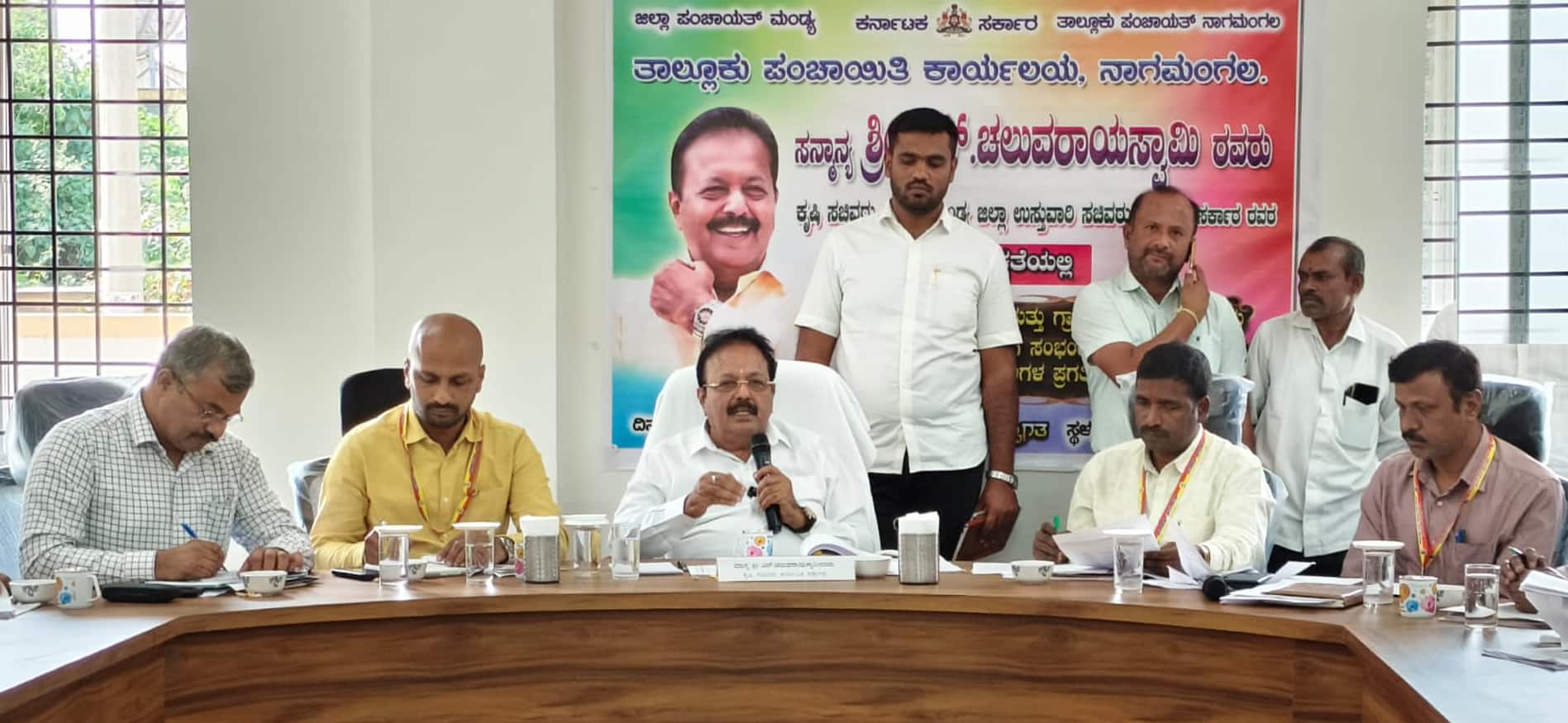 ಬೇಸಿಗೆ ಮುಗಿದು ಮಳೆಗಾಲ ಆರಂಭವಾಗುವ ತನಕ ತಾಲೂಕಿನ ಯಾವೊಂದು ಹಳ್ಳಿಯಲ್ಲಿಯೂ ಜನ-ಜಾನುವಾರುಗಳಿಗೆ ಕುಡಿಯುವ ನೀರಿಗೆ ಸಮಸ್ಯೆಯಾಗದಂತೆ ಮುಂಜಾಗ್ರತಾ ಕ್ರಮವಹಿಸಬೇಕು ಎಂದು ಜಿಲ್ಲಾ ಉಸ್ತುವಾರಿ ಸಚಿವ ಎನ್.ಚಲುವರಾಯಸ್ವಾಮಿ ತಾಲೂಕಿನ ಎಲ್ಲಾ ಗ್ರಾಪಂ ಪಿಡಿಒಗಳಿಗೆ ಖಡಕ್ ಸೂಚನೆ ನೀಡಿದರು.ಪಟ್ಟಣದ ಕೃಷಿ ಭವನದ ಸಭಾಂಗಣದಲ್ಲಿ ಗ್ರಾಮೀಣಾಭಿವೃದ್ಧಿ ಮತ್ತು ಪಂಚಾಯತ್ ರಾಜ್ ಇಲಾಖೆಯ ವಿವಿಧ ಯೋಜನೆಗಳಿಗೆ ಸಂಬಂಧಿಸಿದಂತೆ ತಾಲೂಕಿನ ಎಲ್ಲಾ ಗ್ರಾಪಂಗಳ ಪಿಡಿಒ ಮತ್ತು ವಿವಿಧ ಇಲಾಖೆಗಳ ಅಧಿಕಾರಿಗಳ ಪ್ರಗತಿ ಪರಿಶೀಲನಾ ಸಭೆಯ ಅಧ್ಯಕ್ಷತೆ ವಹಿಸಿ ಮಾತನಾಡಿದರು.