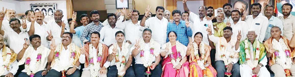 ಚುನಾವಣೆ ಫಲಿತಾಂಶದ ನಂತರ ವಿಜೇತರಾದ ಜೆಡಿಎಸ್ ಬೆಂಬಲಿತ ನಿರ್ದೇಶಕರನ್ನು ಮನ್ಮುಲ್ ನಿರ್ದೇಶಕ ಸಿ.ಶಿವಕುಮಾರ್ ಅಭಿನಂದಿಸಿದರು. ಹಾರೋಹಳ್ಳಿ ಗಿರೀಶ್ ಇತರರಿದ್ದರು.