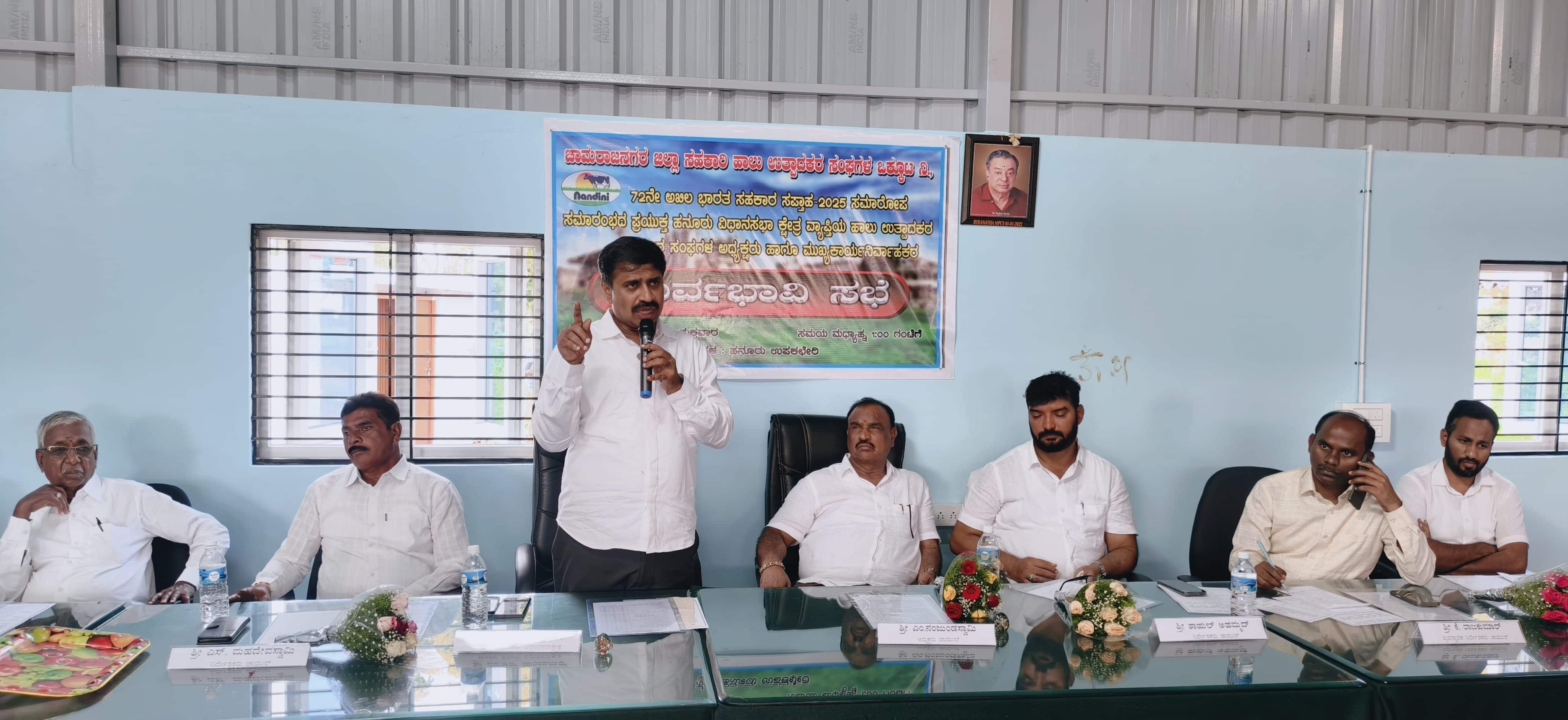 ಹನೂರು ಪಟ್ಟಣದ ಚಾಮುಲ್ ಉಪ ಕಚೇರಿಯಲ್ಲಿ 72 ನೇ ಅಖಿಲ ಭಾರತ ಸಹಕಾರ ಸಪ್ತಾಹ - 2025 ಸಮಾರೋಪ ಸಮಾರಂಭದ ಪ್ರಯುಕ್ತ ಹನೂರು ಕ್ಷೇತ್ರ ವ್ಯಾಪ್ತಿಯ ಹಾಲು ಉತ್ಪಾದಕರ ಸಹಕಾರ ಸಂಘಗಳ ಅಧ್ಯಕ್ಷರು ಹಾಗೂ ಮುಖ್ಯ ಕಾರ್ಯನಿರ್ವಾಹಕರ ಪೂರ್ವಭಾವಿಯಲ್ಲಿ ಶಾಸಕ ಎಂ.ಆರ್. ಮಂಜುನಾಥ್ ಅವರು ಮಾತನಾಡಿದರು.;Resize=(128,128))
