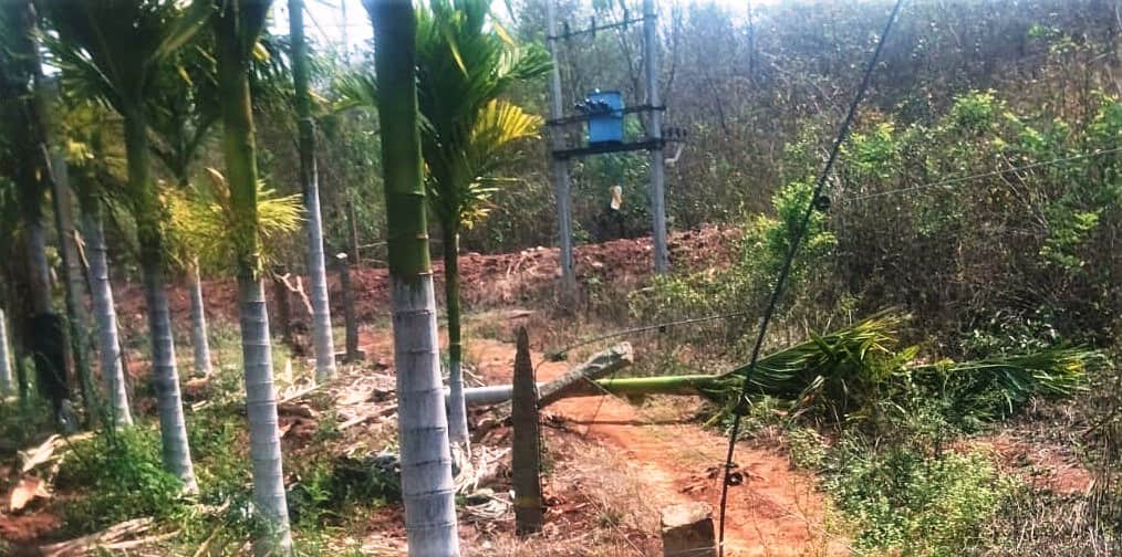 23ಕೆಟಿಆರ್.ಕೆ. 10ಃ ಭಾನುವಾರ ರಾತ್ರಿ ಅತ್ತಿಗನಾಳು ಗ್ರಾಮ ಸರ್ವೇ ನಂ. 120 ರ ಪಕ್ಕದ ರೈತರ ಜಮೀನಿನಲ್ಲಿ ಕಾಡಾನೆಗಳು ಹಾವಳಿ ಮಾಡಿ ತಂತಿ ಬೇಲಿ ಮತ್ತು ಅಡಕೆ ಮರವನ್ನು ಮುರಿದಿರುವುದು.