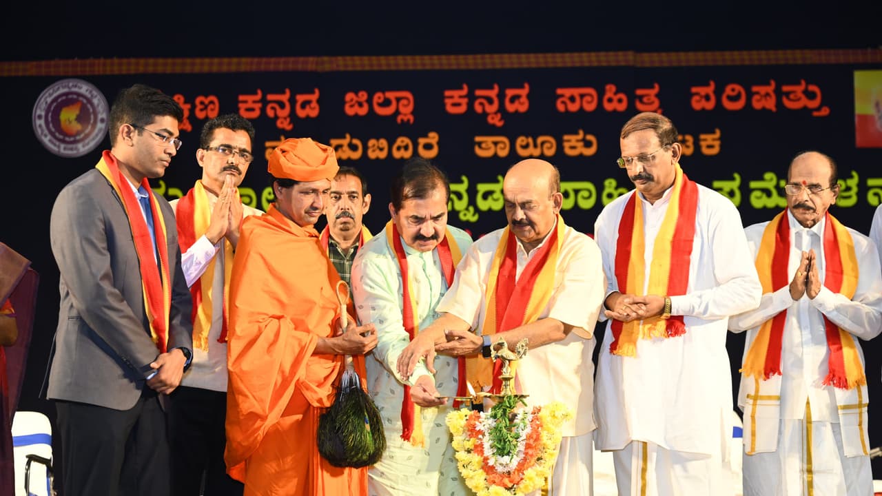 ಕನ್ನಡ ಹೃದಯದ ಭಾಷೆಯಾಗಲಿ: ಜಾಗತೀಕರಣದ ಫಲವಾಗಿ ಇಂಗ್ಲಿಷ್ ಎಲ್ಲೆಡೆ ವ್ಯಾಪಿಸಿ ಅಡುಗೆ ಮನೆವರೆಗೂ ವ್ಯಾಪಿಸಿದೆ. ಮುಖ್ಯವಾಗಿ ಕನ್ನಡ ನಮ್ಮ ಹೃದಯದ ಭಾಷೆಯಾಗಬೇಕು. ಕವಿ ರಾಘವಾಂಕನೆಂದಂತೆ ಪರರ ನಿಂದಿಸಿ ತನ್ನನ್ನು ಹೊಗಳಿಕೊಳ್ಳದ ಕನ್ನಡ ಭಾಷೆಯ ಉಳಿವಿಗೆ ನಮ್ಮತನವನ್ನು ನಾವು ಪ್ರೀತಿಸಬೇಕಾಗಿದೆ. ರಾಜಕಾರಣಿಗಳ ಆಡುಂಬೋಲದಲ್ಲಿ ನರ್ತಕರಾಗದೇ ಧರ್ಮಾಂಧರಾಗದೇ ಧರ್ಮ ಮಾರ್ಗದಲ್ಲಿ ನಡೆಯುವ ಮನಸ್ಸಿನವರಾಗಬೇಕು ಎಂದು ರಂಗಕರ್ಮಿ,ಕಿರುತೆರೆ , ಚಲನಚಿತ್ರ ನಟ ಶ್ರೀಪತಿ ಮಂಜನಬೈಲು ಸಮ್ಮೇಳನಾಧ್ಯಕ್ಷತೆ ವಹಿಸಿ ಮಾತನಾಡಿದರು.ಆಳ್ವ ಕನ್ನಡದ ಕಟ್ಟಾಳುವಾಗಲಿ: ಶುಭಾಶಂಸನೆಯ ಆಶೀರ್ವಚನ ನೀಡಿದ ಜೈನ ಮಠದ ಚಾರುಕೀರ್ತಿ ಭಟ್ಟಾರಕ ಶ್ರೀ, ಕನ್ನಡ ನಾಡು ನುಡಿಯ ಕಾಳಜಿಯ ಅಪರೂಪದ ಚಿಂತಕ ಡಾ. ಮೋಹನ ಆಳ್ವ ಅವರನ್ನು ಕನ್ನಡದ ಕಟ್ಟಾಳುವಾಗಿದ್ದ ಪಾಟೀಲ ಪುಟ್ಟಪ್ಪರಂತೆ ನಾಡು ನುಡಿ ಅಭಿವೃದ್ಧಿಯ ಕಾರ್ಯಕ್ಕೆ ನಾಮ ನಿರ್ದೇಶನ ಮಾಡುವಂತಾಗಬೇಕು ಎಂದು ಹಾರೈಸಿದರು. ಜಿಲ್ಲಾ ಕಸಾಪ ಅಧ್ಯಕ್ಷ ಡಾ.ಎಂ.ಪಿ. ಶ್ರೀನಾಥ್, ಆಶಯ ನುಡಿಗಳನ್ನಾಡಿದರು. ತಹಸೀಲ್ದಾರ್ ಮುಕುಲ್ ಜೈನ್, ಉದ್ಯಮಿ ಶ್ರೀಪತಿ ಭಟ್, ಚೌಟರ ಅರಮನೆಯ ಕುಲದೀಪ್ ಎಂ, ಎಂಸಿಎಸ್ ಬ್ಯಾಂಕಿನ ಅಧ್ಯಕ್ಷ ಎಂ. ಬಾಹುಬಲಿ ಪ್ರಸಾದ್, ಬೆದ್ರ ತುಳುಕೂಟದ ಅಧ್ಯಕ್ಷ ಧನಕೀರ್ತಿ ಬಲಿಪ, ಜಯಶ್ರೀ ಅಮರನಾಥ ಶೆಟ್ಟಿ, ಮೂಡುಬಿದಿರೆ ಜೈನ್ ಮಿಲನ್ ಅಧ್ಯಕ್ಷ ದಿನೇಶ್ ಆನಡ್ಕ, ಮೂಲ್ಕಿತಾಲೂಕು ಕಸಾಪ ಅಧ್ಯಕ್ಷ ಮಿಥುನ್ ಉಡುಪ, ಮೂಡುಬಿದಿರೆ ಕಸಾಪ ಗೌರವ ಕೋಶಾಧ್ಯಕ್ಷ ಅಂಡಾರು ಗುಣಪಾಲ ಹೆಗ್ಡೆ, ಕಾರ್ಯದರ್ಶಿ ಸದಾನಂದ ನಾರಾವಿ, ಹೋಬಳಿ ಅಧ್ಯಕ್ಷ ರಾಮಕೃಷ್ಣ ಶಿರೂರು, ಕೆಂದ್ರೀಯ ಕಾರ್ಯಕಾರಿ ಸಮಿತಿಯ ಡಾ.ಮಾಧವ ಎಂ.ಕೆ, ಗೌರವ ಕಾರ್ಯದರ್ಶಿ ವಿನಯ ಆಚಾರ್ಯ ಉಪಸ್ಥಿತರಿದ್ದರು.