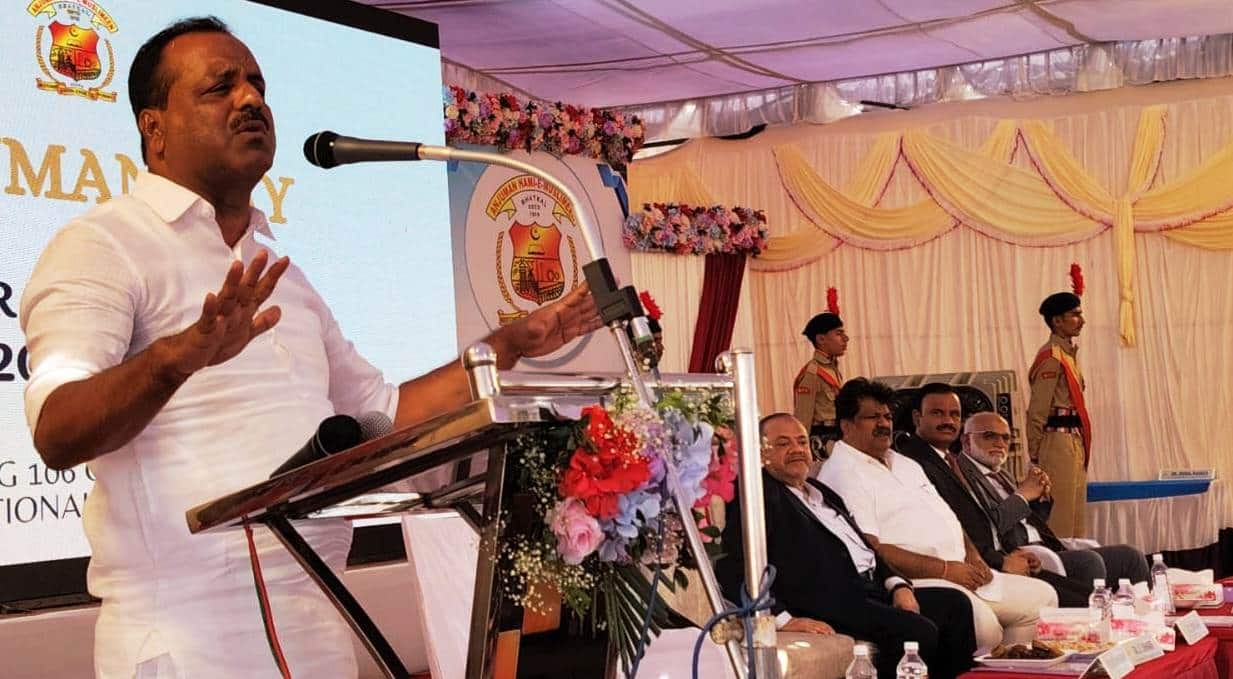 ಅಂಜುಮನ್ ಕಾಲೇಜಿನಲ್ಲಿ ಶನಿವಾರ ಅಂಜುಮನ್ ಶಿಕ್ಷಣ ಸಂಸ್ಥೆ ಏರ್ಡಿಸಿದ 106ನೇ ವರ್ಷದ ಅಂಜುಮನ್ ಡೇ ಕಾರ್ಯಕ್ರಮದಲ್ಲಿ ಮುಖ್ಯ ಅತಿಥಿಯಾಗಿ ಮಾತನಾಡಿ, ಬದುಕಿನಲ್ಲಿ ತಾಳ್ಮೆ ಮುಖ್ಯ, ತಾಳ್ಮೆ ಇದ್ದರೆ ಎಂತಹ ಯಶಸ್ಸೂ ಕೂಡ ನಮ್ಮದಾಗಿಸಬಹುದು. ದೇಶ ವಿಶ್ವದಲ್ಲಿ ಪ್ರಥಮ ಸ್ಥಾನಕ್ಕೆ ಬರಲು ಸಂಸದರು, ಶಾಸಕರು, ಅಧಿಕಾರಿಗಳು, ವಾಣಿಜ್ಯೋದ್ಯಮಿಗಳು ಬಲಿಷ್ಠರಾಗುವುದಕ್ಕಿಂತ, ಯುವಜನತೆ, ವಿದ್ಯಾರ್ಥಿಗಳು ಬಲಿಷ್ಠರಾಗಬೇಕು. ಅಂದಾಗ ಮಾತ್ರ ದೇಶ ವಿಶ್ವದಲ್ಲಿ ನಂಬರ್ 1 ಸ್ಥಾನಕ್ಕೇರಲು ಸಾಧ್ಯ. ಪ್ರತಿಯೊಬ್ಬರೂ ತಮ್ಮ ಮಕ್ಕಳ ಶಿಕ್ಷಣಕ್ಕೆ ಒತ್ತು ಕೊಡಬೇಕು. ಭಟ್ಕಳದ ಮುಸ್ಲೀಮರು ವ್ಯಾಪಾರ ವಹಿವಾಟಿಗೆ ಒತ್ತು ಕೊಟ್ಟಷ್ಟೇ ತಮ್ಮ ಮಕ್ಕಳನ್ನು ಐಎಎಸ್, ಐಪಿಎಸ್, ಉತ್ತಮ ವೈದ್ಯರು ಹೀಗೆ ಸಮಾಜದ ಎಲ್ಲಾ ರಂಗಗಳಲ್ಲಿಯೂ ತೊಡಗಿಸಿಕೊಳ್ಳುವಂತೆ ಮಾಡಬೇಕು. ಮಕ್ಕಳನ್ನು ಕೇವಲ ವ್ಯಾಪಾರಕ್ಕಷ್ಟೇ ಸೀಮಿತಗೊಳಿಸಬಾರದು. ಭಾರತದ ಸಂವಿಧಾನ ಶ್ರೇಷ್ಠ ಸಂವಿಧಾನವಾಗಿದೆ. ನಾವು ನಮ್ಮ ದೇಶದಲ್ಲಿ ಸ್ವಚ್ಛಂದವಾಗಿ ಓಡಾಟ ಮಾಡಬಹುದು. ಇಂತಹ ಪ್ರಜಾಪ್ರಭುತ್ವದ ವ್ಯವಸ್ಥೆ ಪ್ರಪಂಚದ ಬೇರೆ ಯಾವುದೇ ದೇಶದಲ್ಲೂ ಕಾಣಲು ಸಾಧ್ಯವಿಲ್ಲ ಎಂದರು. ಭಟ್ಕಳ ಅಂಜುಮನ್ ಸಂಸ್ಥೆ ಗುಣಮಟ್ಟದ ಶಿಕ್ಷಣ ನೀಡುತ್ತಿದೆ. ಉತ್ತಮ ವಾತಾವರಣ, ಜಾಗ ಇರುವ ಸಂಸ್ಥೆ ಆದಷ್ಟು ಬೇಗ ಕಾನೂನು ಮತ್ತು ಮೆಡಿಕಲ್ ಕಾಲೇಜು ಸ್ಥಾಪನೆ ಮಾಡಬೇಕು. ಆ ಮೂಲಕ ಭಟ್ಕಳವನ್ನು ಮಣಿಪಾಲ್ ನಂತೆ ಅಭಿವೃದ್ಧಿ ಮಾಡಬೇಕು ಎಂದ ಅವರು, ಕಾನೂನು ಮತ್ತು ಮೆಡಿಕಲ್ ಕಾಲೇಜು ಆದರೆ ಸ್ಥಳೀಯವಾಗಿ ಸಾಕಷ್ಟು ಉದ್ಯೋಗ ಸೃಷ್ಟಿಯಾಗುತ್ತದೆ. ಭಟ್ಕಳ ಪಟ್ಟಣದ ಹೆಚ್ಚಿನ ಅಭಿವೃದ್ಧಿ ಕಾಣುತ್ತದೆ. ಅದೂ ಅಲ್ಲದೇ ಯುವ ಜನತೆ ಕಾನೂನು ಮತ್ತು ವೈದ್ಯಕೀಯ ಶಿಕ್ಷಣ ಪಡೆಯಲು ಬೇರೆ ಕಡೆಗೆ ಹೋಗುವ ಪರಿಸ್ಥಿತಿ ಬರುವುದಿಲ್ಲ. ಹೀಗಾಗಿ ಅಂಜುಮನ್ ಆಡಳಿತ ಮಂಡಳಿ ಇವರೆಡನ್ನೂ ಆದಷ್ಟು ಬೇಗ ಮಾಡಬೇಕು. ಸರಕಾರದಿಂದ ಇದಕ್ಕೆ ಬೇಕಾದ ಸಹಾಯ ಸಹಕಾರ ಮಾಡುವುದಾಗಿ ಅವರು ಭರವಸೆ ನೀಡಿದರು.ಇನ್ನೋರ್ವ ಅತಿಥಿಯಾಗಿದ್ದ ಜಿಲ್ಲಾ ಉಸ್ತುವಾರಿ ಸಚಿವ ಮಂಕಾಳ ಎಸ್. ವೈದ್ಯ ಮಾತನಾಡಿ, ಭಟ್ಕಳ ಅಂಜುಮನ್ ಸಂಸ್ಥೆ 106 ವರ್ಷ ಪೂರೈಸಿದ್ದು, ಉತ್ತಮ ಶಿಕ್ಷಣ ನೀಡುತ್ತಿದೆ. ಇಂದಿನ ದಿನಗಳಲ್ಲಿ ಶಿಕ್ಷಣ ಇಲ್ಲದಿದ್ದರೆ ಏನನ್ನೂ ಮಾಡಲು ಸಾಧ್ಯವಿಲ್ಲ. ಸಾಕಷ್ಟು ಜಾಗ ಹೊಂದಿರುವ ಅಂಜುಮನ್ ಸಂಸ್ಥೆ ಆರ್ಥಿಕವಾಗಿ ಸದೃಢವಾಗಿದ್ದು, ಇಂತಹ ಸಂಸ್ಥೆಗೆ ಕಾನೂನು ಮತ್ತು ಮೆಡಿಕಲ್ ಕಾಲೇಜು ಮಾಡುವುದು ಕಷ್ಟದಾಯಕವಲ್ಲ. ಜಿಲ್ಲೆಯಲ್ಲಿ ಮಲ್ಟಿಸ್ಪೆಷಾಲಿಟಿ ಆಸ್ಪತ್ರೆ ಅಗತ್ಯವಾಗಿದ್ದು, ಆದಷ್ಟು ಬೇಗ ಮೆಡಿಕಲ್ ಕಾಲೇಜು ಮಾಡಿದರೆ ಎಲ್ಲಾ ರೀತಿಯ ಸಹಾಯ ಸಹಕಾರ ಮಾಡುವುದಾಗಿ ಹೇಳಿದರು.
