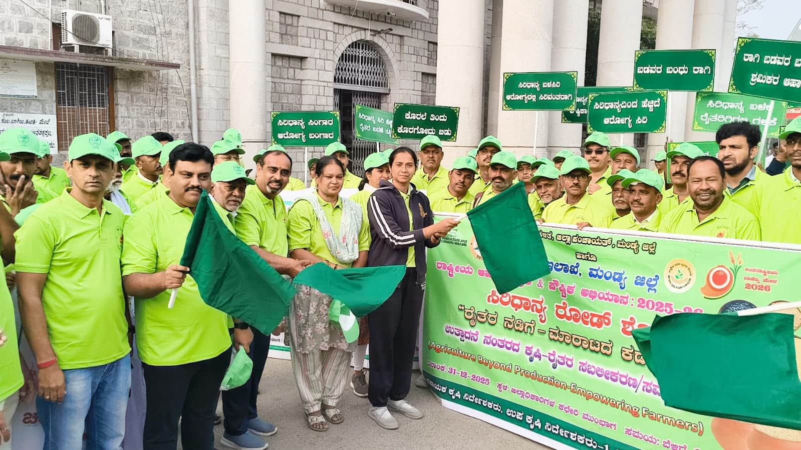 ಸಿರಿಧಾನ್ಯಗಳ ಮಹತ್ವವನ್ನು ಮುಂದಿನ ಪೀಳಿಗೆಗೆ ತಿಳಿಸುವುದು ನಮ್ಮೆಲ್ಲರ ಕರ್ತವ್ಯವಾಗಿದೆ ಎಂದು ಜಿಲ್ಲಾ ಪಂಚಾಯ್ತಿ ಮುಖ್ಯ ಕಾರ್ಯನಿರ್ವಹಣಾಧಿಕಾರಿ ಕೆ.ಆರ್.ನಂದಿನಿ ಹೇಳಿದರು.ಕೃಷಿ ಇಲಾಖೆ ವತಿಯಿಂದ ಬುಧವಾರ ಜಿಲ್ಲಾಧಿಕಾರಿ ಕಚೇರಿ ಮುಂಭಾಗದಲ್ಲಿ ಆಹಾರ ಮತ್ತು ಪೌಷ್ಟಿಕ ಭದ್ರತೆ (ನ್ಯೂಟ್ರಿ ಸಿರಿಧಾನ್ಯ) ಯೋಜನೆಯಡಿ ‘ಸಿರಿಧಾನ್ಯ ರೋಡ್ ಶೋ’ ಮೂಲಕ ಮುಂದಿನ ಪೀಳಿಗೆಗೆ ಸಿರಿಧಾನ್ಯ ಬೆಳೆಗಳ ಬಗ್ಗೆ ಅರಿವು ಮೂಡಿಸುವ ಸಂಬಂಧ ಆಯೋಜಿಸಲಾಗಿದ್ದ ‘ಸಿರಿಧಾನ್ಯ ರೋಡ್ ಶೋ’ ಕಾರ್ಯಕ್ರಮಕ್ಕೆ ಹಸಿರು ಬಾವುಟ ಹಾರಿಸುವ ಮೂಲಕ ಉದ್ಘಾಟಿಸಿ ಮಾತನಾಡಿದರು.