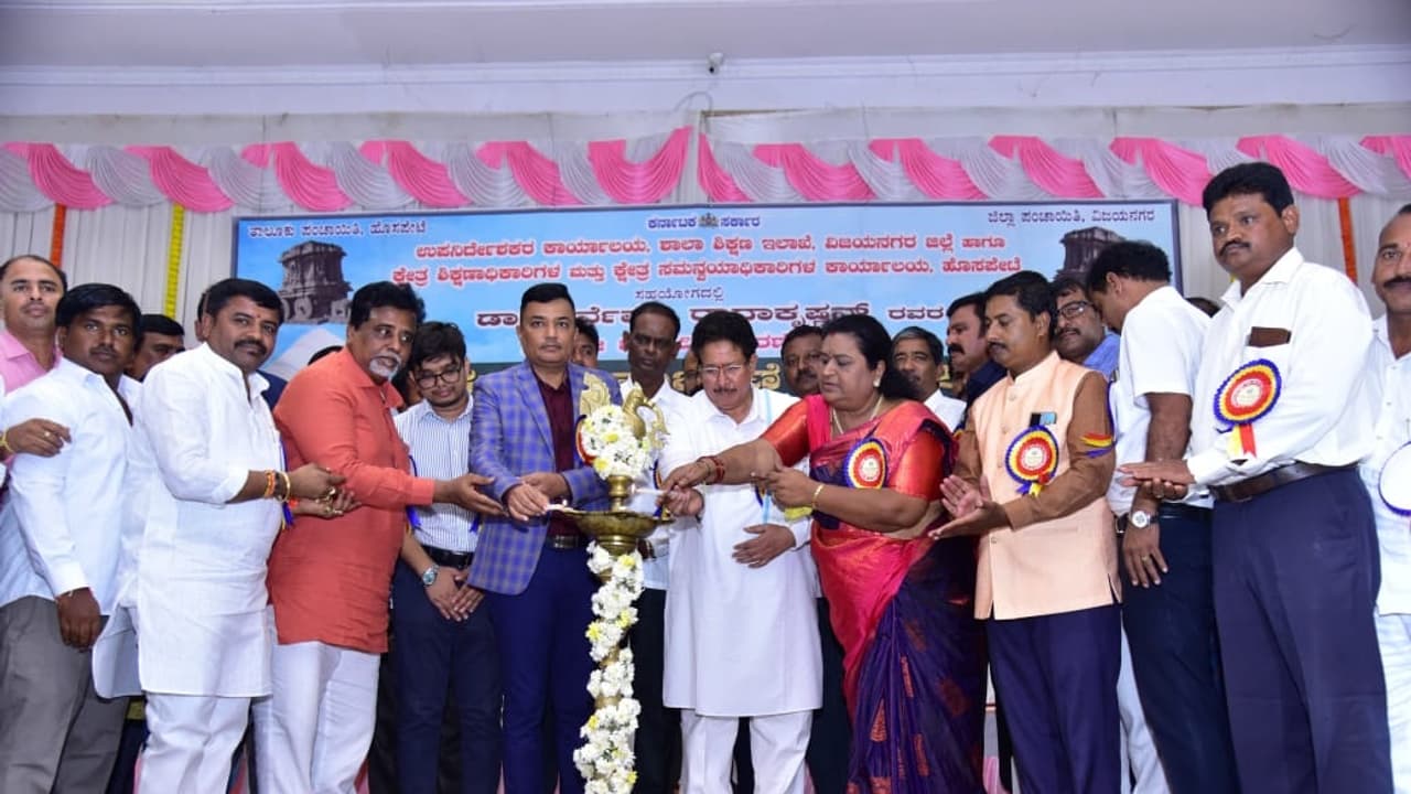 ಹೊಸಪೇಟೆಯಲ್ಲಿ ಸೋಮವಾರ ಶಿಕ್ಷಕರ ದಿನಾಚರಣೆ ಕಾರ್ಯಕ್ರಮಕ್ಕೆ ಜಿಲ್ಲಾಧಿಕಾರಿ ಎಂ.ಎಸ್. ದಿವಾಕರ್ ಚಾಲನೆ ನೀಡಿದರು.