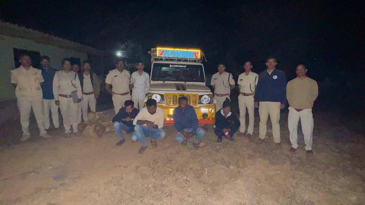 ಶಿರಸಿ ತಾಲೂಕಿನ ಸೋಮನಳ್ಳಿ ಗ್ರಾಮದ ಅರಣ್ಯ ಸರ್ವೆ ನಂಬರ್ 8ರಲ್ಲಿ ಅನಧಿಕೃತವಾಗಿ 2 ಸಾಗವಾನಿ ಮರವನ್ನು ಕಡಿದು ನಾಟ ತಯಾರಿಸಿ, ದಾಸ್ತಾನು ಇಟ್ಟಿರುವ ಖಚಿತ ಮಾಹಿತಿ ಮೇರೆಗೆ ದಾಳಿ ನಡೆಸಿದ ಅರಣ್ಯ ಇಲಾಖೆ ಅಧಿಕಾರಿಗಳು ಹಾಗೂ ಸಿಬ್ಬಂದಿ, ನಾಲ್ವರನ್ನು ಬಂಧಿಸಿ 5 ನಗಗಳಿಂದ 0.399 ಕ್ಯೂಬಿಕ್ ನಾಟ ಹಾಗೂ ಕೃತ್ಯಕ್ಕೆ ಬಳಸಿದ ಪಿಕ್ಅಪ್ ಬುಲೆರೋ ವಾಹನ ವಶಪಡಿಸಿಕೊಂಡಿದ್ದಾರೆ.ಸಿದ್ದಾಪುರ ತಾಲೂಕಿನ ಗಡಿಪ್ರದೇಶದಲ್ಲಿರುವ ಗಿರಗಡ್ಡೆ ಗ್ರಾಮದ ಕಾನಗದ್ದೆ-ಅರೇಹಳ್ಳ ಭಾಗದ ಅರಣ್ಯ ಪ್ರದೇಶದಲ್ಲಿ ಈ ಹಿಂದೆ ಸಾವಿರಾರು ಜಾತಿಯ ಬೆಲೆಬಾಳುವ ಮರಗಳಿದ್ದವು. ಅರಣ್ಯಚೋರರಿಂದ ಮರಗಳೆಲ್ಲವೂ ಸರ್ವ ನಾಶವಾಗಿದ್ದು, ಈಗ ಕಾಡು ಜಾತಿಯ ಮರಗಳೇ ಇಲ್ಲವಾಗಿದೆ. ಅವ್ಯಾಹತವಾಗಿ ಮರಗಳ ಕಳ್ಳತನ ನಡೆಯುತ್ತಿದ್ದರೂ ಇಷ್ಟು ವರ್ಷ ಅರಣ್ಯ ಇಲಾಖೆಯ ಅಧಿಕಾರಿಗಳು ಕಣ್ಮುಚ್ಚಿ ಕುಳಿತಿದ್ದರು. ಯಾಕೆಂದರೆ ಅರಣ್ಯ ಇಲಾಖೆಯ ಅಧಿಕಾರಿಗಳಿಗೆ ತಿಂಗಳಿಗೆ ಇಂತಿಷ್ಟು ಹಣ ಸಂದಾಯವಾಗುತ್ತಿತ್ತು ಎಂಬ ಆರೋಪ ಕೇಳಿಬಂದಿದೆ. ಈ ಬಗ್ಗೆ ಹಿರಿಯ ಅಧಿಕಾರಿಗಳು ಸ್ಥಳ ಪರಿಶೀಲಿಸಿ, ಸೂಕ್ತ ಕ್ರಮ ಕೈಗೊಳ್ಳಬೇಕೆಂದು ಸ್ಥಳೀಯರು ಆಗ್ರಹಿಸುತ್ತಿದ್ದಾರೆ.