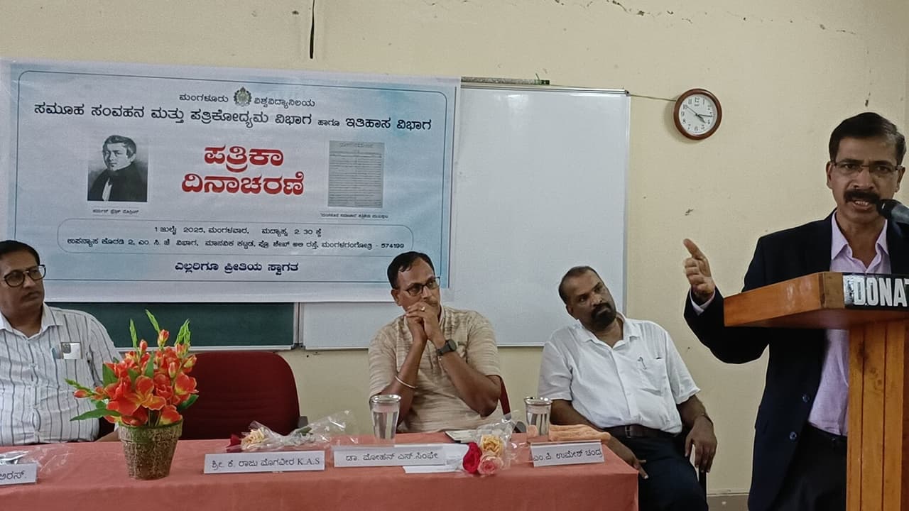 ಮಂಗಳೂರು ವಿಶ್ವವಿದ್ಯಾನಿಲಯದ ಸಮೂಹ ಸಂವಹನ ಮತ್ತು ಪತ್ರಿಕೋದ್ಯಮ (ಎಂಸಿಜೆ) ವಿಭಾಗ ಹಾಗೂ ಇತಿಹಾಸ ವಿಭಾಗಗಳ ಸಹಯೋಗದಲ್ಲಿ ಮಂಗಳವಾರ ಮಂಗಳಗಂಗೋತ್ರಿಯಲ್ಲಿ ಪತ್ರಿಕಾ ದಿನಾಚರಣೆ ನೆರವೇರಿತು.