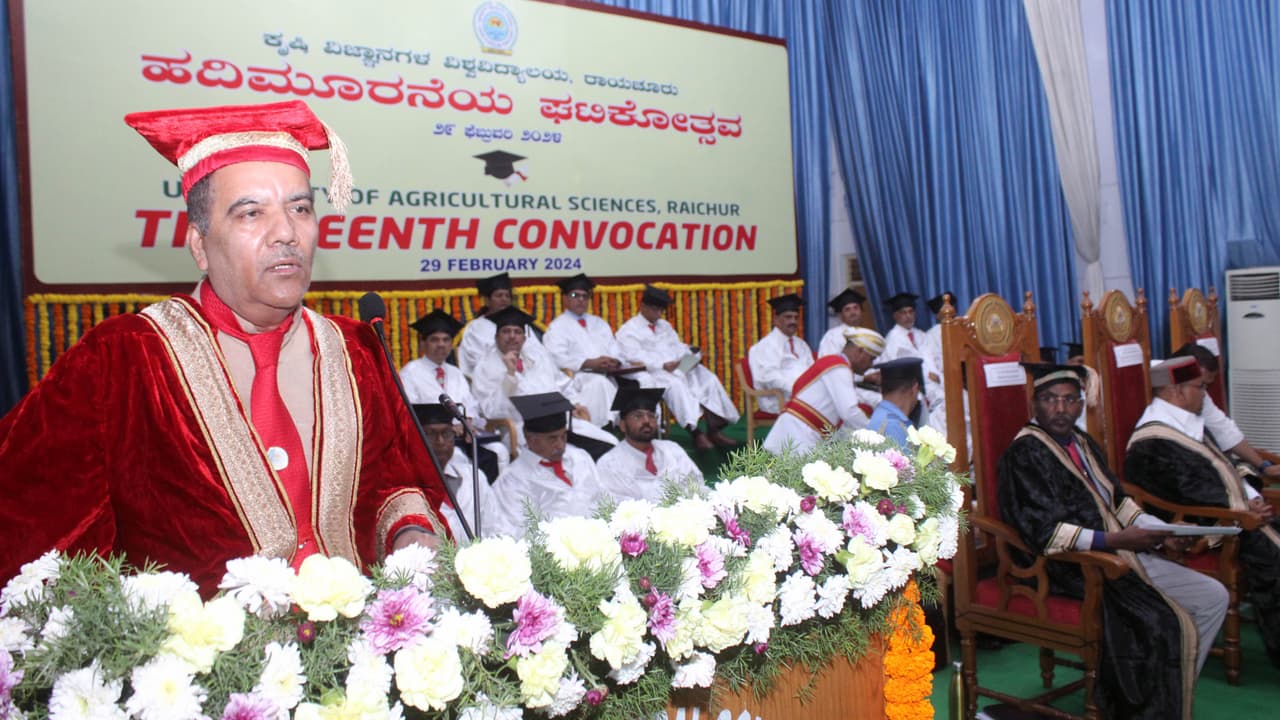 ರಾಯಚೂರು ಕೃಷಿ ವಿಜ್ಞಾನಗಳ ವಿಶ್ವವಿದ್ಯಾಲಯದ ಪ್ರೇಕ್ಷಾಗೃಹದಲ್ಲಿ ನಡೆದ 13ನೇ ಘಟಿಕೋತ್ಸವ ಸಮಾರಂಭದಲ್ಲಿ ನವದೆಹಲಿಯ ಐಸಿಎಆರ್ ನ ತಾಂತ್ರಿಕ ವಿಭಾಗದ ಉಪ ಮಹಾನಿರ್ದೇಶಕ ಡಾ.ಎಸ್.ಎನ್ ಝಾ ಅವರು ಘಟಿಕೋತ್ಸವದ ಭಾಷಣೆಯನ್ನು ಮಾಡಿದರು.