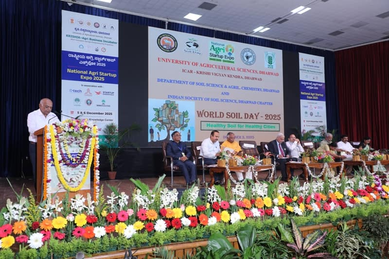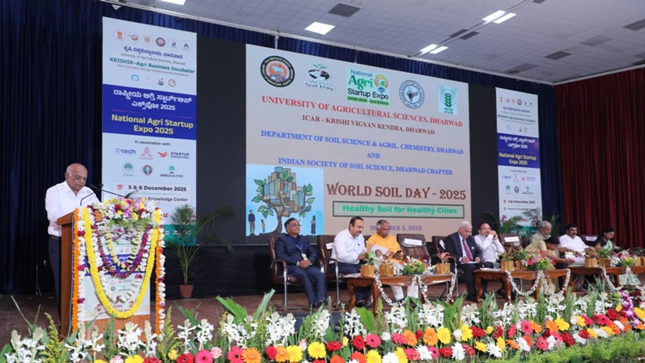 ವಿಶ್ವ ಮಣ್ಣು ದಿನಾಚರಣೆ ಅಂಗವಾಗಿ ಕೃಷಿ ಮಹಾವಿದ್ಯಾಲಯ ನಿವೃತ್ತ ಡೀನ್ ಡಾ.ಜಿ.ಎಸ್. ದಾಸೋಗ್ ಮಾತನಾಡಿ, ಮಣ್ಣು ನಮ್ಮನ್ನು ಪೋಷಿಸುವುದರ ಹೊರತಾಗಿ ನೀರನ್ನು ಶುದ್ಧೀಕರಿಸುವುದು, ಕಾರ್ಬನ್ ಭಂಡಾರವಾಗಿರುವುದು, ಜೀವ ವೈವಿಧ್ಯತೆಯ ತಾಯಿಯಾಗಿರುವುದು, ವಿಶ್ವದ ಶೇ.95ರಷ್ಟು ಜನರು ತಮ್ಮ ಆಹಾರಕ್ಕಾಗಿ ಮಣ್ಣಿನ ಮೇಲೆ ಅವಲಂಬಿತರಾಗಿದ್ದಾರೆ ಎಂದರು.ಕೃವಿವಿ ಕುಲಪತಿ ಡಾ. ಪಿ.ಎಲ್. ಪಾಟೀಲ ಮಾತನಾಡಿ, ಕೃಷಿ ಕ್ಷೇತ್ರವು ತಂತ್ರಜ್ಞಾನ ಆಧಾರಿತವಾಗಿ ವೇಗವಾಗಿ ಬೆಳೆಯುತ್ತಿದ್ದು, ಆಹಾರ ಮತ್ತು ರಾಷ್ಟ್ರೀಯ ಭದ್ರತೆಯಲ್ಲಿ ಮಹತ್ತರ ಪಾತ್ರ ವಹಿಸುತ್ತಿದೆ, ಭಾರತ ವಿಶ್ವದ ಆಹಾರ ಉತ್ಪಾದನೆಯಲ್ಲಿ ಮುಂದಾಳಾಗುವ ದಿನ ಸನಿಹದಲ್ಲಿದೆ, ಕೃಷಿಕ್ ಅಗ್ರಿ ಬಿಸಿನೆಸ್ ಇಂಕ್ಯುಬೇಟರ್, ಕೃವಿವಿ. ಧಾರವಾಡವು ೧೩೬ ಸ್ಟಾರ್ಟ್ಅಪ್ಗಳಿಗೆ ಒಟ್ಟು ₹ 14 ಕೋಟಿ ಆರ್ಥಿಕ ಬೆಂಬಲ ನೀಡಿದೆ ಎಂದು ಹೇಳಿದರು.ಕಾರ್ಯಕ್ರಮದಲ್ಲಿ 2024-2025 ಸ್ಮರಣ ಸಂಚಿಕೆ ಬಿಡುಗಡೆ ಮಾಡಲಾಯಿತು. ಸ್ಪರ್ಧೆ ವಿಜೇತರಿಗೆ ಪ್ರಮಾಣ ಪತ್ರ ವಿತರಿಸಲಾಯಿತು. ಈ ವೇಳೆ ಯೋಜನೆಯ ಮುಖ್ಯಸ್ಥ ಡಾ. ಎಸ್.ಎಸ್. ಡೊಳ್ಳಿ. ವಿವಿ ವ್ಯವಸ್ಥಾಪನಾ ಮಂಡಳಿ ಸದಸ್ಯರಾದ ಪಾರ್ವತಿ ಕುರ್ಲೆ, ವಿ.ಪಿ. ಪೊಲೀಸ್ಗೌಡರ, ಬಸವರಾಜ ಕುಂದಗೋಳಮಠ, ರವಿಕುಮಾರ ಮಾಳಿಗೇರ, ವಿವಿ ಕುಲಸಚಿವ ಜಯಶ್ರೀ ಶಿಂತ್ರಿ, ಶಿಕ್ಷಣ ನಿರ್ದೇಶಕ ಡಾ. ಬಿ.ಡಿ. ಬಿರಾದಾರ, ಸಂಶೋಧನಾ ನಿರ್ದೇಶಕ ಡಾ. ಪಿ.ಯು. ಕೃಷ್ಣರಾಜ, ವಿಸ್ತರಣಾ ನಿರ್ದೇಶಕ ಡಾ. ಎಂ.ವಿ. ಮಂಜುನಾಥ ಇದ್ದರು.