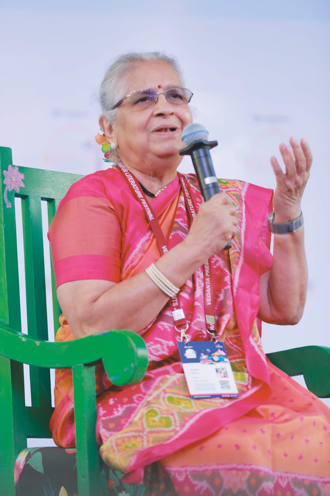ಕಿಕ್ಕಿರಿದ ಕೇಳುಗರು, ಮಾತುಮಾತಿಗೂ ಚಪ್ಪಾಳೆ, ಮಾತು ನಡೆಯುತ್ತಿದ್ದಂತೆಯೇ ಪುಸ್ತಕಕ್ಕೆ ಸಹಿ ಹಾಕಿಸಿಕೊಳ್ಳಲು ಸಾಲುಗಟ್ಟಿದ ಜನರ ನಡುವೆ ಸುಧಾಮೂರ್ತಿ, ‘ಕಳೆದುಹೋದ ಬೆಂಡೋಲೆಯ ಮಾಂತ್ರಿಕತೆ’ ಎಂಬ ವಿಷಯದ ಕುರಿತು ಪತ್ರಕರ್ತೆ ಮಂದಿರಾ ನಾಯರ್ ಜತೆ ಜೈಪುರ ಸಾಹಿತ್ಯೋತ್ಸವದ ಮೂರನೆಯ ದಿನದ ಮೊದಲ ಸಂವಾದ ಗೋಷ್ಠಿ ನಡೆಸಿಕೊಟ್ಟರು.ಮಾತಿನ ನಡುವೆ ತನ್ನ ಬದುಕಿನ ಅನುಭವ, ಮೊಮ್ಮಕ್ಕಳನ್ನು ಬೆಳೆಸುವ ರೀತಿ, ಕುಸಿಯುತ್ತಿರುವ ಕುಟುಂಬ ವ್ಯವಸ್ಥೆ, ಲೇಖಕರ ಜವಾಬ್ದಾರಿಯ ಕುರಿತು ಸುಧಾಮೂರ್ತಿ ಮಾತಾಡಿದರು.