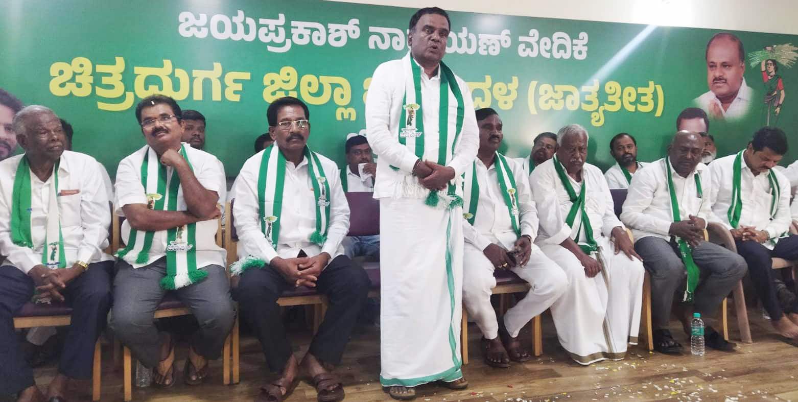 ಹಿರಿಯೂರು ವಿಧಾನಸಭಾ ಕ್ಷೇತ್ರದ ಪರಾಜಿತ ಅಭ್ಯರ್ಥಿ ರವೀಂದ್ರಪ್ಪ ಮಾತನಾಡಿ ಸಾಮಾಜಿಕ ನ್ಯಾಯದ ಮೇಲೆ ನಂಬಿಕೆಯಿಟ್ಟುಕೊಂಡಿರುವ ಜೆಡಿಎಸ್ ನಿಂದ ಮಾತ್ರ ತಳ ಮಟ್ಟದ ಕಾರ್ಯಕರ್ತನು ಅಧಿಕಾರ ಹಿಡಿಯಬಹುದು. ಹೆಚ್.ಡಿ.ಕುಮಾರಸ್ವಾಮಿರವರು ಎರಡು ಬಾರಿ ರಾಜ್ಯದ ಮುಖ್ಯಮಂತ್ರಿಯಾಗಿದ್ದಾಗ ರೈತರ ಸಾಲ ಮನ್ನಾ ಮಾಡಿ ಪಕ್ಷ ಸದಾ ಅನ್ನದಾತ ರೈತನ ಪರವಾಗಿದೆ ಎನ್ನುವುದನ್ನು ಸಾಬೀತುಪಡಿಸಿದ್ದರು. ಈಗಿನ ಕಾಂಗ್ರೆಸ್ ಸರ್ಕಾರ ಜನರ ತೆರಿಗೆ ಹಣದಿಂದಲೇ ಬಿಟ್ಟಿ ಭಾಗ್ಯಗಳನ್ನು ನೀಡಿ ಖಜಾನೆಯನ್ನು ದಿವಾಳಿಯಾಗಿಸಿದೆ ಎಂದರು.ಜೆಡಿಎಸ್ ಜಿಲ್ಲಾ ಕಾರ್ಯಾಧ್ಯಕ್ಷ ಜೆ.ಬಿ.ಶೇಖರ್, ಮಹಾ ಪ್ರಧಾನ ಕಾರ್ಯದರ್ಶಿ ಡಿ.ಗೋಪಾಲಸ್ವಾಮಿ ನಾಯಕ, ನಗರಸಭೆ ಮಾಜಿ ಸದಸ್ಯ ನಸ್ರುಲ್ಲಾ, ಯುವ ವಕೀಲ ಓ.ಪ್ರತಾಪ್ಜೋಗಿ, ಮಠದಹಟ್ಟಿ ವೀರಣ್ಣ, ಎಂ.ಡಿ.ರಮೇಶ್ಕುಮಾರ್, ಶಿವಪ್ರಸಾದ್ಗೌಡ, ಶಂಕರಮೂರ್ತಿ, ಶಿವಶಂಕರ್, ವೀರಭದ್ರ, ಕರಿಬಸಪ್ಪ, ಆನಂದ,