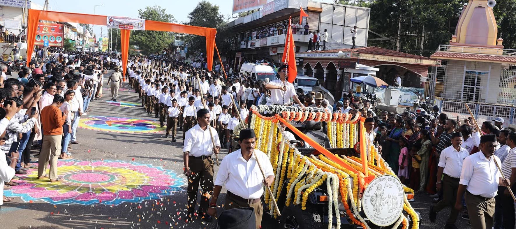 ರಾಷ್ಟ್ರೀಯ ಸ್ವಯಂ ಸೇವಕ ಸಂಘದ ಶತಮಾನೋತ್ಸವದ ಸಂದರ್ಭದಲ್ಲಿ ವಿದ್ಯಾಗಿರಿಯಲ್ಲಿ ಭಾನುವಾರ ಹಮ್ಮಿಕೊಂಡಿದ್ದ ಘೋಷ ಸಹಿತ ಬಾಲಕರ ಪಥಸಂಚಲನ ಗಮನ ಸೆಳೆಯಿತು. ವಿದ್ಯಾಗಿರಿಯ ಅಥಣಿ ಕಲ್ಯಾಣ ಮಂಟಪದಿಂದ ಸಂಜೆ 4ಕ್ಕೆ ಪಥಸಂಚಲನ ಆರಂಭಗೊಂಡಿತು. ಭಾರೀ ಸಂಖ್ಯೆಯಲ್ಲಿ ಬಾಲಕರು ಗಣವೇಷಧಾರಿಗಳಾಗಿ ದಂಡ ಹಿಡಿದು ಹೆಜ್ಜೆ ಹಾಕಿ ಗಮನ ಸೆಳೆದರು. ಘೋಷ ವಾದನಕ್ಕೆ ತಕ್ಕಂತೆ ಶಿಸ್ತುಬದ್ಧ ಹೆಜ್ಜೆ ನೋಡುಗರ ಕಣ್ಮನ ಸೆಳೆಯಿತು.