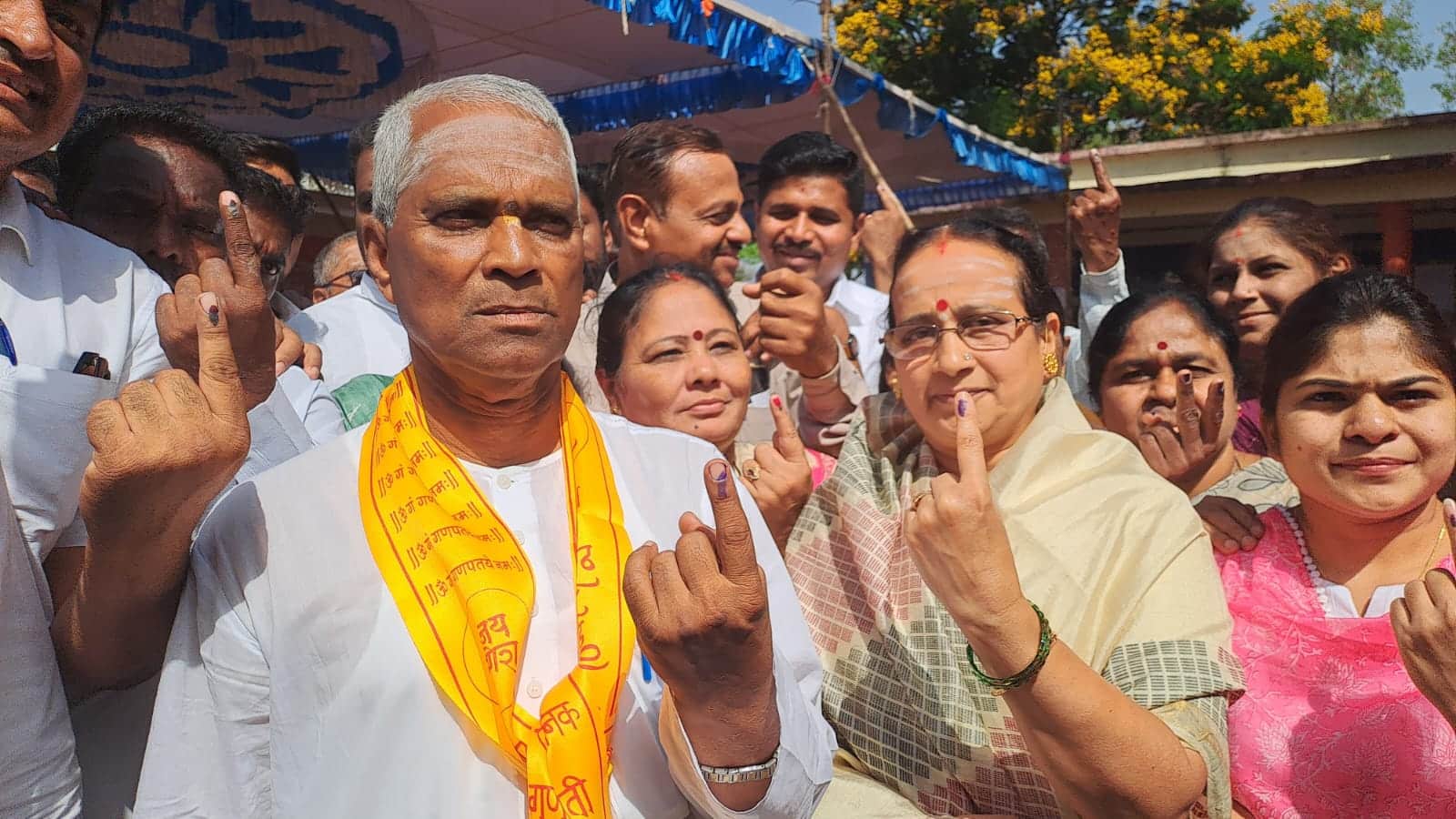 ಬಿಜೆಪಿ ಅಭ್ಯರ್ಥಿ ವೀರಣ್ಣ ಚರಂತಿಮಠ ಹಳದಿ ಶಾಲು ಹಾಕಿಕೊಂಡು ಪತ್ನಿ ಹಾಗೂ ಕುಟುಂಬದ ಸದಸ್ಯರ ಜೊತೆ ಬಾಗಲಕೋಟೆ ಹಳೆ ನಗರದ ಮತಗಟ್ಟೆ ಸಂಖ್ಯೆ 166 ರಲ್ಲಿ ಮತದಾನ ಮಾಡಿ ಗಮನ ಸೆಳೆದರು.