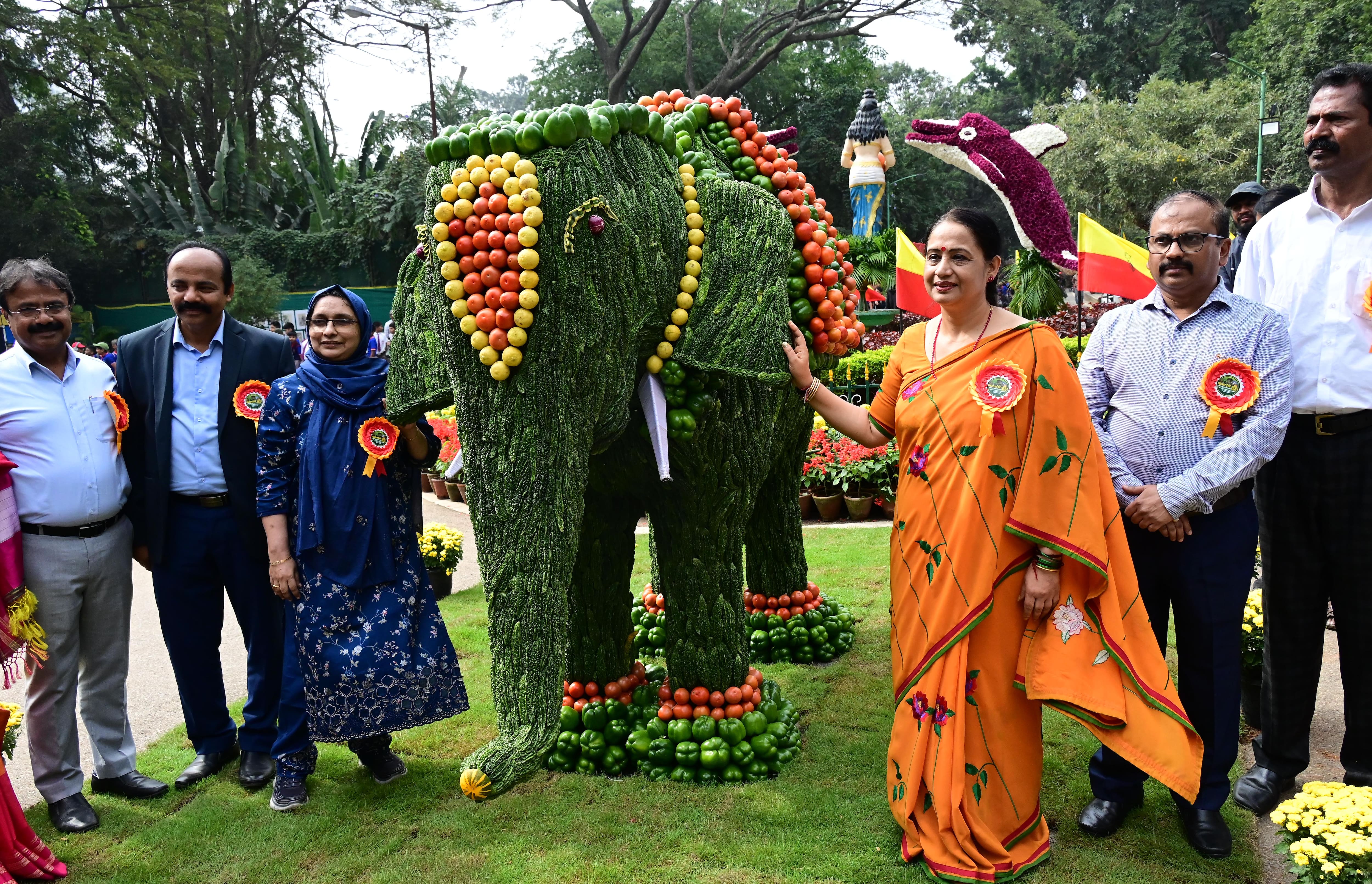 ಬಣ್ಣ ಬಣ್ಣದ ಹೂವುಗಳು, ಕೆಂಪು-ಹಳದಿ ಬಣ್ಣ ಕನ್ನಡದ ಬಾವುಟಗಳು, ಹೂವು, ಹಣ್ಣು, ತರಕಾರಿಗಳಿಂದ ರೂಪುಗೊಂಡಿದ್ದ ಪ್ರಾಣಿ, ಪಕ್ಷಿಗಳ ಕಲಾಕೃತಿಗಳು, ಕಣ್ಣರಳಿಸಿ ಬೆರಗಿನಿಂದ ಹೂವು, ಗಿಡಗಳನ್ನು ನೋಡುತ್ತಾ ನಿಂತ ಪುಟಾಣಿಗಳು, ಶಾಲಾ ಕಾಲೇಜು ಹುಡುಗ, ಹುಡುಗಿಯರ ಕೇಕೇ.. ಇದರ ನಡುವೆ ಮಹಿಳೆಯರ ಡೊಳ್ಳು ಕುಣಿತದ ಹಿಮ್ಮೇಳ ಹಬ್ಬದ ವಾತಾವಣವನ್ನೇ ಸೃಷ್ಟಿಸಿತ್ತು.