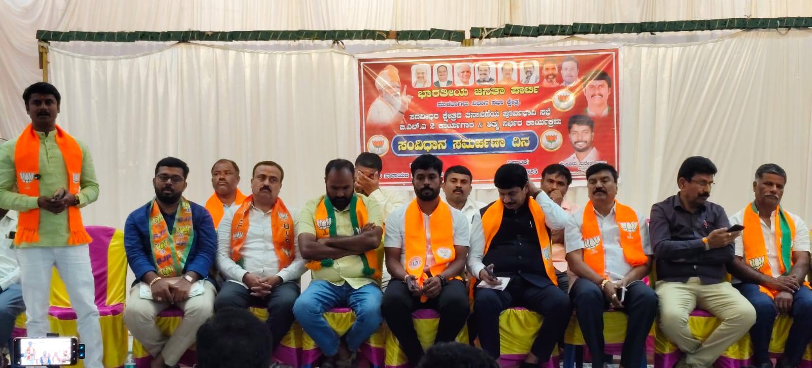 ದೇಶಕ್ಕೆ ಅಂಬೇಡ್ಕರ್ ನೀಡಿರುವ ಸಂವಿಧಾನ ಇಡೀ ಪ್ರಪಂಚದಲ್ಲೇ ಬಲಿಷ್ಠ, ಸಂವಿಧಾನದ ಅಡಿಯಲ್ಲಿ ಭಾರತೀಯರಾದ ನಾವೆಲ್ಲರೂ ಕೆಲಸ ಮಾಡಬೇಕು. ಅಂಬೇಡ್ಕರ್ ಅತ್ಯಂತ ಜ್ಞಾನವುಳ್ಳವರಾಗಿದ್ದು ಅವರು ಪ್ರಧಾನಮಂತ್ರಿ ಆಗಬಾರದೆಂದು ಕಾಂಗ್ರೆಸ್ಸಿವರು ಲೋಕಸಭಾ ಚುನಾವಣೆಯಲ್ಲಿ ಎರಡು ಬಾರಿ ಸೋಲಿಸಿ ಅವಮಾನ ಮಾಡಿದ್ದಾರೆ. ಜೊತೆಗೆ ಅವರು ನಿಧನರಾದಾಗ ದೆಹಲಿಯಲ್ಲಿ ಅವರ ಅಂತ್ಯಸಂಸ್ಕಾರಕ್ಕೆ ಸ್ಥಳ ನೀಡದೆ ದ್ರೋಹ ಬಗ್ದಿದ್ದಾರೆಂದು ಆರೋಪಿಸಿದರು.ನರೇಂದ್ರ ಮೋದಿ ಪ್ರಧಾನ ಮಂತ್ರಿಯಾದ ಮೇಲೆ ಸಂವಿಧಾನ ದಿನಾಚರಣೆ ಜಾರಿಗೆ ತಂದರು. ಬಿಜೆಪಿ ಮತ್ತು ಆರ್ಎಸ್ಎಸ್ ಅಂಬೇಡ್ಕರ್ ಪರವಾಗಿ ಕೆಲಸ ಮಾಡಿದ ಕೀರ್ತಿ ಇದೆ. ಕಾಂಗ್ರೆಸ್ ನವರು ಈಗ ಅಂಬೇಡ್ಕರ್ ಪರವಾಗಿ ಮಾತನಾಡುತ್ತಿರುವರಲ್ಲಿ ಯಾವುದೇ ಅರ್ಥವಿಲ್ಲ ಅವರಿಗೆ ಅವಮಾನ ಮಾಡಿದವರು, ಈಗ ಉಲ್ಟಾ ಮಾತನಾಡುತ್ತಿದ್ದು ಇದನ್ನು ಜನ ನಂಬಬಾರದೆಂದು ಮನವಿ ಮಾಡಿದರು.ಜನಹಿತ ಕಾಪಾಡುವಲ್ಲಿ ಕೈ ವಿಫಲ