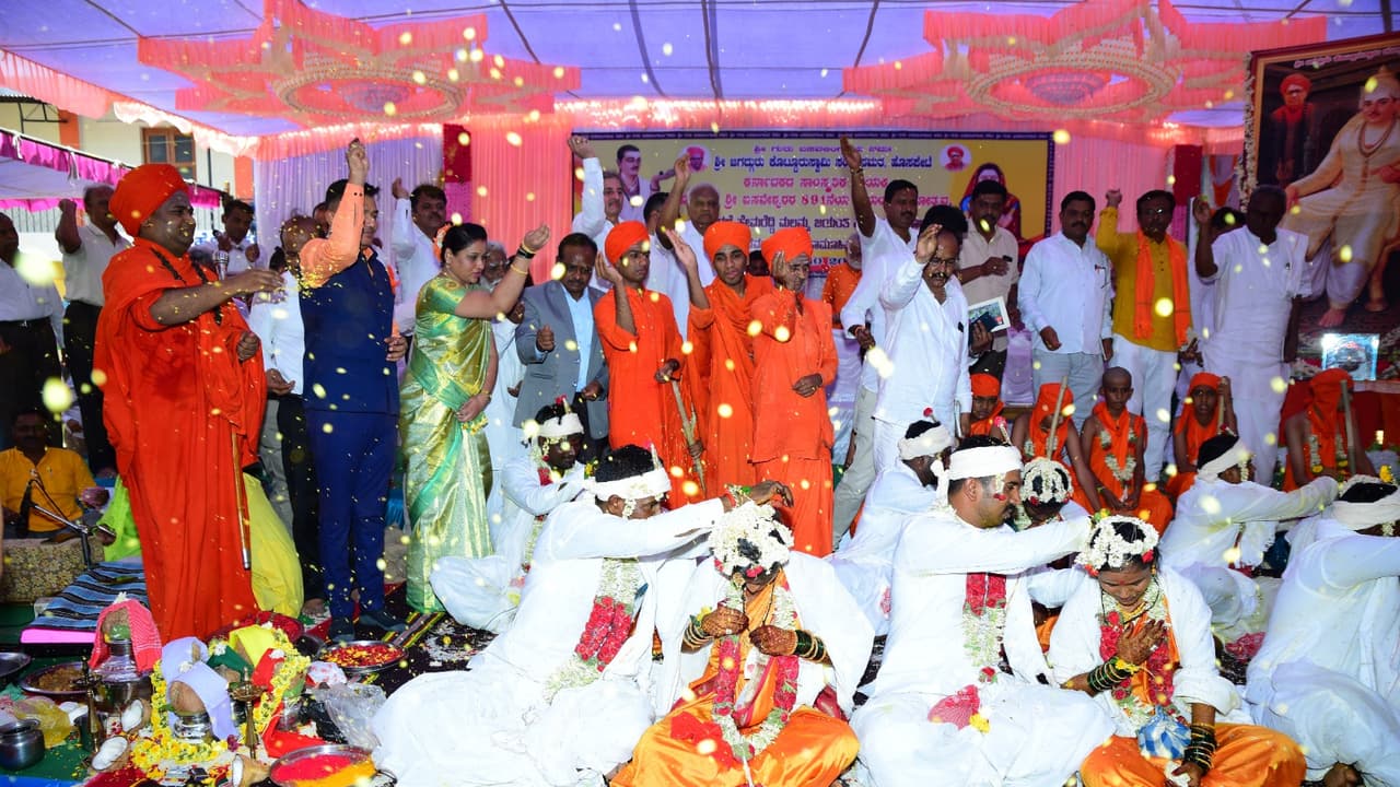 ಸಾಮೂಹಿಕ ವಿವಾಹಗಳಿಂದ ತಗ್ಗುವ ಆರ್ಥಿಕ ಹೊರೆ:ಶ್ರೀಮಠವು ಕಳೆದ 50 ವರ್ಷಗಳಿಂದ ಉಚಿತವಾಗಿ ಸಾಮೂಹಿಕ ವಿವಾಹಗಳುನ್ನು ಮಾಡುತ್ತ ಬಂದಿದೆ. ಸಮೂಹಿಕ ವಿವಾಹಗಳು ಆರ್ಥಿಕ ಹೊರೆಯನ್ನು ತಗ್ಗಿಸಿ ಸುಖ, ಸಂಸಾರಕ್ಕೆ ಬುನಾದಿ ಆಗಲಿವೆ. ತಂದೆ, ತಾಯಿಗಳು ಮಕ್ಕಳನ್ನು ನೌಕರಿಗೆ ಮತ್ತು ಹಣ ಸಂಪಾದನೆ ಮಾಡುವ ನಿಟ್ಟಿನಲ್ಲಿ ಬೆಳೆಸುವುದು ಸರಿಯಲ್ಲ, ದೇಶಕ್ಕೆ ಕೊಡುಗೆ ನೀಡುವ ಮನೋಭಾವನೆಯನ್ನು ಮಕ್ಕಳಲ್ಲಿ ಬೆಳೆಸಬೇಕು ಎಂದರು.