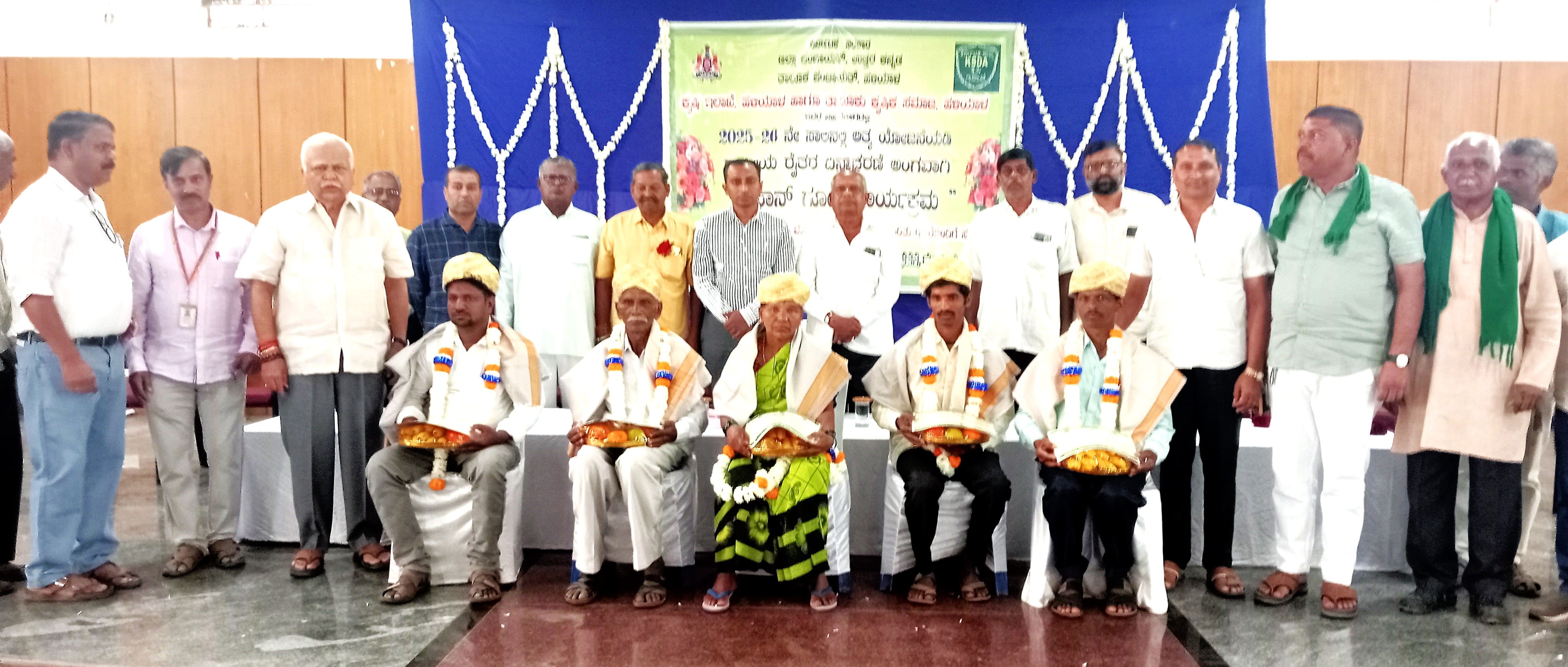 ಕಾರ್ಯಕ್ರಮದಲ್ಲಿ 19 ಫಲಾನುಭವಿಗಳಿಗೆ ಕೃಪಿ ಯಂತ್ರೋಪಕರಣಗಳನ್ನು ಹಾಗೂ 35 ಫಲಾನುಭವಿಗಳಿಗೆ ಹನಿ ನೀರಾವರಿ ಘಟಕಗಳನ್ನು ವಿತರಿಸಲಾಯಿತು. ಇದೇ ಸಂದರ್ಭದಲ್ಲಿ ಕೃಷಿಯಲ್ಲಿ ಸಾಧನೆಗೈದಿರುವ ತಾಲೂಕು ಮಟ್ಟದ ಶ್ರೇಷ್ಠ ಕೃಷಿ ಪ್ರಶಸ್ತಿಗೆ ಭಾಜಣರಾದ ಹವಗಿಯ ಮಂಜುನಾಥ ವಿಠ್ಠಲ ಯದೋನಿ, ಕೆ.ಕೆ. ಹಳ್ಳಿಯ ಮಹಾಬಳೇಶ್ವರ ಕೇರಕಾರ, ಬಡಾಕಾನ ಶಿರಢಾದ ರುಕ್ಮಿಣಿ ಮಿಂಡೋಳಕರ, ಕೆರವಾಡ ಗ್ರಾಮದ ಅಜಿತ ಸಹದೇವ ನಿಂಗನಗೌಡಾ ಹಾಗೂ ಜನಗಾ ಗ್ರಾಮದ ಚಂದ್ರಕಾಂತ ಜೈವಂತ ಬಿರ್ಜೆ ಅವರನ್ನು ಶಾಸಕರು ಸನ್ಮಾನಿಸಿದರು.ರಾಜ್ಯ ಕೃಷಿಕ ಸಮಾಜಕ್ಕೆ 1 ಲಕ್ಷ ದೇಣಿಗೆ ನೀಡಿದ ಹಳಿಯಾಳ ತಾಲೂಕು ಕಬ್ಬು ಬೆಳೆಗಾರರ ಸಂಘದ ಅಧ್ತಕ್ಷ ಶಂಕರ ಕಾಜಗಾರ ಅವರನ್ನು ಸಹ ಸನ್ಮಾನಿಸಲಾಯಿತು. ವೇದಿಕೆಯಲ್ಲಿ ಕಾರ್ಯಾಗಾರದ ಪ್ರಮುಖ ಸಂಪನ್ಮೂಲ ವ್ಯಕ್ತಿಗಳಾದ ಯ್ಯೂಟ್ಯೂಬರ್ ಗೌರಿಶಂಕರ ಕರೋಶಿ, ಬ್ಲಾಕ್ ಕಾಂಗ್ರೆಸ್ ಅಧ್ಯಕ್ಷ ಕೃಷ್ಣ ಪಾಟೀಲ, ಪ್ರಮುಖರಾದ ಸಂಜು ಮಿಶಾಳೆ, ತಹಸೀಲ್ದಾರ್ ಫಿರೋಜಷಾಹ ಸೋಮನಕಟ್ಟಿ, ಕಬ್ಬು ಬೆಳೆಗಾರರ ಸಂಘದ ಜಿಲ್ಲಾಧ್ಯಕ್ಷ ಸಂದೀಪಕುಮಾರ ಬೊಬಾಟೆ, ಸುರೇಶ ಮಾನಗೆ, ಸಂಭಾಜಿ ಜಾವಳೇಕರ, ಉಮೇಶ ಬೊಳಶೆಟ್ಟಿ, ರವಿ ತೋರಣಗಟ್ಟಿ, ಅಶೋಕ ಮೇಟಿ, ನಾರಾಯಣ ಬೊಬಾಟೆ ಹಾಗೂ ಇತರರು ಇದ್ದರು.ಕೃಷಿ ಸಹಾಯಕ ನಿರ್ದೇಶಕ ಪಿ.ಐ. ಮಾನೆ ಅವರು ಪ್ರಸ್ತಾವಿಕವಾಗಿ ಮಾತನಾಡಿ ಕಾರ್ಯಕ್ರಮದ ಉದ್ದೇಶವನ್ನು ವಿವರಿಸಿದರು. ಕೃಷಿ ಇಲಾಖೆಯ ಚಿಕ್ಕಮಠ ಹಾಗೂ ಇತರರು ಇದ್ದರು.