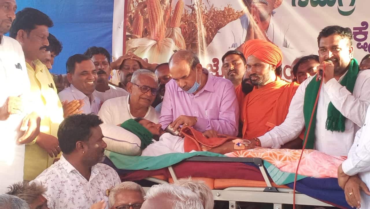 ಹೋರಾಟ ವೇದಿಕೆಯಲ್ಲಿ ಗುರುವಾರ ಅಸ್ವಸ್ಥರಾಗಿದ್ದ ಹಿನ್ನೆಲೆ ಶ್ರೀಗಳನ್ನು ಗದುಗಿನ ಜಿಮ್ಸ್ಗೆ ಆಸ್ಪತ್ರೆಗೆ ದಾಖಲಿಸಲಾಗಿತ್ತು. ಅಲ್ಲದೇ ಶ್ರೀಗಳ ಆರೋಗ್ಯದಲ್ಲಿ ಚೇತರಿಕೆ ಕಂಡುಬಂದಿತ್ತು. ಸರ್ಕಾರದ ನಿರ್ಧಾರದಿಂದ ಹರ್ಷಗೊಂಡ ಶ್ರೀಗಳು ಲಕ್ಷ್ಮೇಶ್ವರದ ಹೋರಾಟ ವೇದಿಕೆಗೆ ಆಗಮಿಸಿ ಮುಖಂಡರೊಂದಿಗೆ ಚರ್ಚಿಸಿ ಉಪವಾಸ ಕೈಬಿಡಲು ನಿರ್ಧರಿಸಿದರು. ಜಿಲ್ಲಾಧಿಕಾರಿ ಶ್ರೀಧರ ಅವರು ಎಳನೀರು ಕುಡಿಸುವ ಮೂಲಕ ಉಪವಾಸ ಸತ್ಯಾಗ್ರಹ ಅಂತ್ಯಗೊಳಿಸಿದರು.ಹೋರಾಟಗಾರರು ಮಾತನಾಡಿ, ಶ್ರೀಗಳು ಉಪವಾಸ ಸತ್ಯಾಗ್ರಹ ಕೈಬಿಟ್ಟಿರುವುದು ಸಂತೋಷದ ಸಂಗತಿ. ಆದರೆ ಬೆಂಬಲ ಬೆಲೆ ಖರೀದಿ ಕೇಂದ್ರ ಆರಂಭವಾಗುವ ವರೆಗೆ ಹೋರಾಟ ಮುಂದುವರಿಸುತ್ತೇವೆ ಎಂದರು.