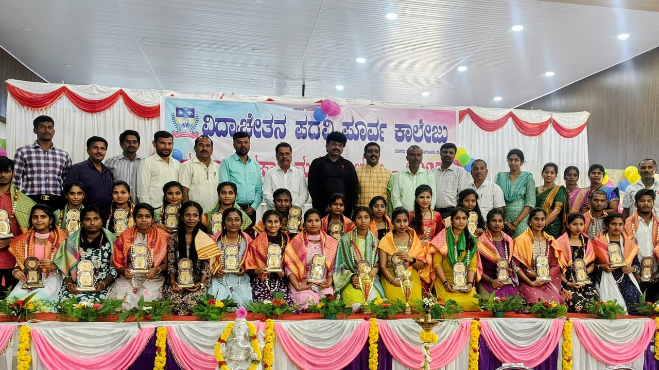 ---8ಕೆಆರ್ ಎಂಎನ್ 7.ಜೆಪಿಜಿಮಾಗಡಿ ಪಟ್ಟಣದ ಬೈಚಾಪುರ ರಸ್ತೆಯಲ್ಲಿರುವ ವಿದ್ಯಾಚೇತನ ಪದವಿಪೂರ್ವ ಕಾಲೇಜಿನಲ್ಲಿ ದ್ವಿತೀಯ ಪಿಯು ಪರೀಕ್ಷೆಯಲ್ಲ ಅತಿಹೆಚ್ಚು ಅಂಕಪಡೆದ ವಿದ್ಯಾರ್ಥಿಗಳನ್ನು ಸನ್ಮಾನಿಸಲಾಯಿತು.