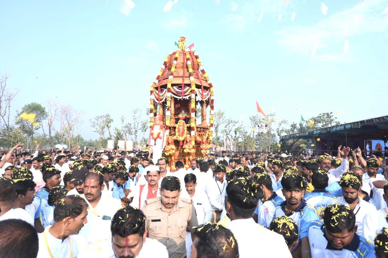 ಅನ್ನದಾಸೋಹದ ಮಠವೆಂದೇ ಪ್ರಸಿದ್ಧಿ ಪಡೆದ ತಾಲೂಕಿನ ಬಂಡಿಗಣಿಯ ಬಸವಗೋಪಾಲ ನೀಲಮಾಣಿಕಮಠದ ಜಾತ್ರಾ ಮಹೋತ್ಸವದ ರಥೋತ್ಸವ ಸಹಸ್ರಾರು ಭಕ್ತರ ಮಧ್ಯೆ ಸೋಮವಾರ ಅದ್ಧೂರಿಯಾಗಿ ನೆರವೇರಿತು.ಬೆಳಗ್ಗೆ ೮ ಕ್ಕೆ ಚಕ್ರವರ್ತಿ ದಾನೇಶ್ವರಶ್ರೀ ಭಾವಚಿತ್ರದೊಂದಿಗೆ ಧ್ವಜಾರೋಹಣ ನೆರವೇರಿಸುವ ಮೂಲಕ ಆದಿನಂದೀಶ್ವರ ರಥೋತ್ಸವ ಜರುಗಿತು. ಜಾತ್ರಾ ಮಹೋತ್ಸವದಲ್ಲಿ ನಾಡಿನ ಹಲವರು ಮಠಾಧೀಶರು ಪಾಲ್ಗೊಂಡಿದ್ದರು. ಕಣ್ಣು ಹಾಯಿಸಿದಷ್ಟು ಜನಸಾಗರವೇ ಮಹಾರಥೋತ್ಸವದಲ್ಲಿ ಪಾಲ್ಗೊಂಡಿತ್ತು, ಭಕ್ತರ ಹರ್ಷೋದ್ಗಾರದ ಮಧ್ಯೆ ಅದ್ಧೂರಿ ರಥೋತ್ಸವಕ್ಕೆ ಚಾಲನೆ ನೀಡಲಾಯಿತು.ಈ ವೇಳೆ ಮಾತನಾಡಿದ ಶಾಸಕ ಸಿದ್ದು ಸವದಿ, ಇದು ಬರೀ ತೇರಲ್ಲ, ಜನರ ತೇರು. ಪ್ರತಿಯೊಬ್ಬನಲ್ಲೂ ಆದಿನಂದೀಶ್ವರ ನೆಲೆಸಿದ್ದಾನೆ. ಅಂತೆಯೇ ಜಾತ್ರೆ ಸೇರಿದಂತೆ ದಿನಂಪ್ರತಿ ಕ್ವಿಂಟಾಲ್ಗಟ್ಟಲೇ ದವಸ ಧಾನ್ಯ ಹರಿದು ಬರುತ್ತದೆ. ಅದು ಮತ್ತೆ ಜನರಿಗೆ ಸಮರ್ಪಣೆಯಾಗುತ್ತದೆ ಚಕ್ರವರ್ತಿ ದಾನೇಶ್ವರ ಶ್ರೀಗಳ ಆಶೀರ್ವಾದದಿಂದ ನಿತ್ಯ ಅನ್ನದಾಸೋಹ ಮಠದಿಂದ ಜರುಗುತ್ತಿರುವುದು ವಿಶೇಷವೆಂದರು.