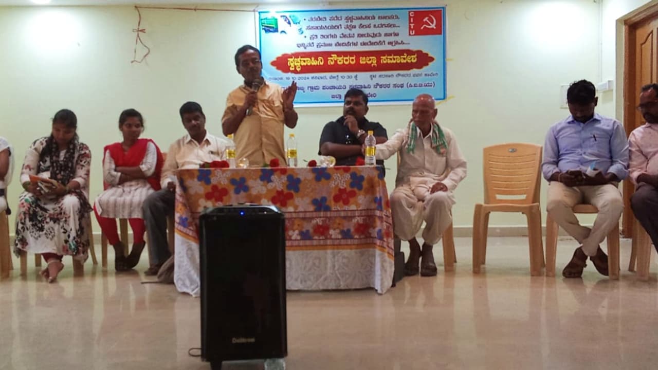 ಕಸ ವಿಲೇವಾರಿ ಮಾಡುವ ಕಾರ್ಮಿಕರಿಗೆ ಕನಿಷ್ಠ ಮೂಲಭೂತ ಸೌಕರ್ಯಗಳನ್ನು ಒದಗಿಸದೇ ಶೋಷಣೆಗೊಳಪಡಿಸುತ್ತಿರುವುದು ಖಂಡನೀಯ. ಕೂಡಲೇ ಸರ್ಕಾರ ತರಬೇತಿ ಪಡೆದ ಎಲ್ಲ ಸ್ವಚ್ಛವಾಹಿನಿ ನೌಕರರಿಗೆ ಗ್ರಾಮ ಪಂಚಾಯಿತಿಗಳಲ್ಲಿ ಕೆಲಸ ನೀಡಬೇಕು ಹಾಗೂ ಪ್ರತಿ ತಿಂಗಳು ವೇತನ ಪಾವತಿ ಮಾಡಬೇಕು ಎಂದು ಆಗ್ರಹಿಸಿದರು.ಡಿವೈಎಫ್ಐ ರಾಜ್ಯ ಕಾರ್ಯದರ್ಶಿ ಬಸವರಾಜ ಪೂಜಾರ ಮಾತನಾಡಿ, ಸಮಾಜದ ನೈರ್ಮಲ್ಯ ಕಾಪಾಡುವ ಸ್ವಚ್ಛವಾಹಿನಿ ಸಿಬ್ಬಂದಿಗಳ ಜೀವನವೂ ಸಹ ನಮ್ಮ ನಾಗರೀಕ ಸಮಾಜದಲ್ಲಿ ಘನತೆಯಿಂದ ಕೂಡಿರಬೇಕು. ಆದರೆ ಸರ್ಕಾರ ಕನಿಷ್ಠ ಮೂಲ ಸೌಲಭ್ಯ ಒದಗಿಸದಿರುವುದು ನಾಚಿಕೆಗೇಡಿನ ಸಂಗತಿ. ಎಲ್ಲ ನೌಕರರು ಸಂಘಟಿತರಾಗಿ ಐಕ್ಯತೆಯಿಂದ ಹೋರಾಡಿ ನಮ್ಮ ಬೇಡಿಕೆಗಳನ್ನು ಈಡೇರಿಸಿಕೊಳ್ಳಲು ಮುಂದಾಗಬೇಕು ಎಂದು ಕರೆ ನೀಡಿದರು.