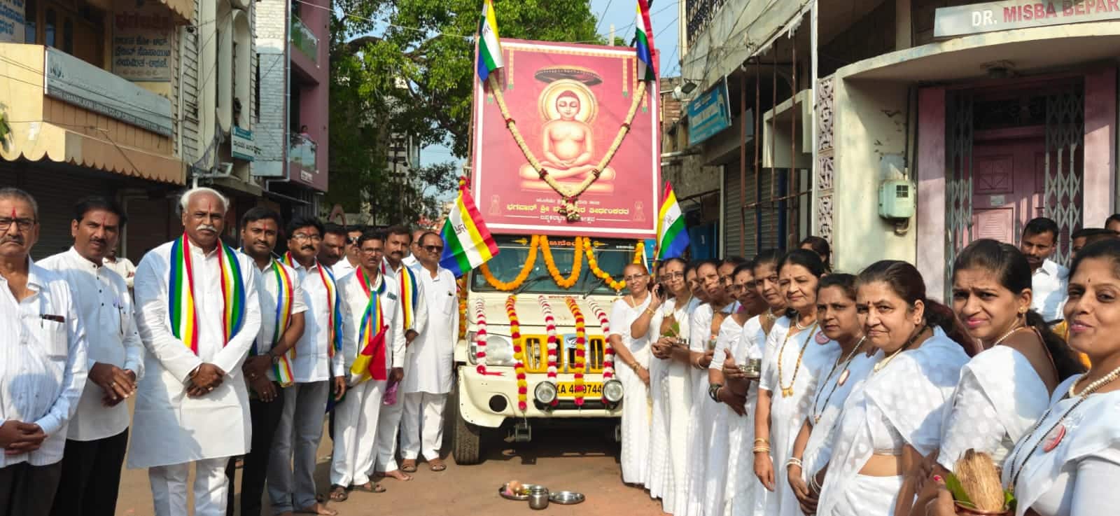 ಅಥಣಿ ಪಟ್ಟಣದ ಬುಧವಾರ ಪೇಟೆಯಲ್ಲಿ ಆಯೋಜಿಸಿದ್ದ ಭಗವಾನ ಮಹಾವೀರರ ಜಯಂತಿ ನಿಮಿತ್ತ ಶಿವಲೀಲಾ ಸದಾಶಿವ ಬುಟಾಳಿ ಭಾವಚಿತ್ರಕ್ಕೆ ಪುಷ್ಪಾರ್ಚನೆ ಮಾಡಿ ಶೋಭಾ ಯಾತ್ರೆಗೆ ಚಾಲನೆ ನೀಡಿದರು.