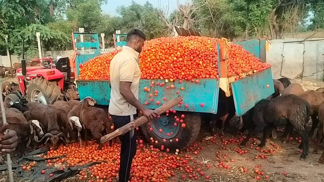 ಹೊಸಪೇಟೆ: ಮಧ್ಯಪ್ರಾಚ್ಯದಲ್ಲಿ ನಡೆಯುತ್ತಿರುವ ಯುದ್ಧದ ಬಿಸಿ ವಿಜಯನಗರ ಜಿಲ್ಲೆಯ ರೈತರಿಗೂ ತಟ್ಟಿದೆ. ಇದರಿಂದಾಗಿ ಮಾರುಕಟ್ಟೆಯಲ್ಲಿ ಟೊಮ್ಯಾಟೊ ಬೆಲೆ ಪಾತಾಳಕ್ಕೆ ಕುಸಿದಿದೆ. ಈ ಬಾರಿ ಉತ್ತಮ ಬೆಲೆ ಸಿಗುವ ಕನಸಿನಲ್ಲಿದ್ದ ರೈತರು ತಲೆಯ ಮೇಲೆ ಕೈಹೊತ್ತು ಕುಳಿತಿದ್ದಾರೆ.ಇರಾನ್- ಇಸ್ರೇಲ್- ಅಮೆರಿಕ ನಡುವಿನ ಯುದ್ಧದ ಬಿಸಿ ನೇರವಾಗಿ ತಟ್ಟದಿದ್ದರೂ ಪರೋಕ್ಷವಾಗಿ ರೈತರಿಗೆ ತಟ್ಟುತ್ತಿದೆ. ಟೊಮ್ಯಾಟೊ ಬೆಲೆ ಕುಸಿತದಿಂದ ಟೊಮ್ಯಾಟೊವನ್ನು ಟ್ರ್ಯಾಕ್ಟರ್ನಲ್ಲಿ ಲೋಡ್ಗಟ್ಟಲೇ ತೆಗೆದುಕೊಂಡು ಹೋಗಿ ಕುರಿ, ಮೇಕೆ, ದನ-ಕರುಗಳಿಗೆ ಹಾಕುತ್ತಿದ್ದಾರೆ.