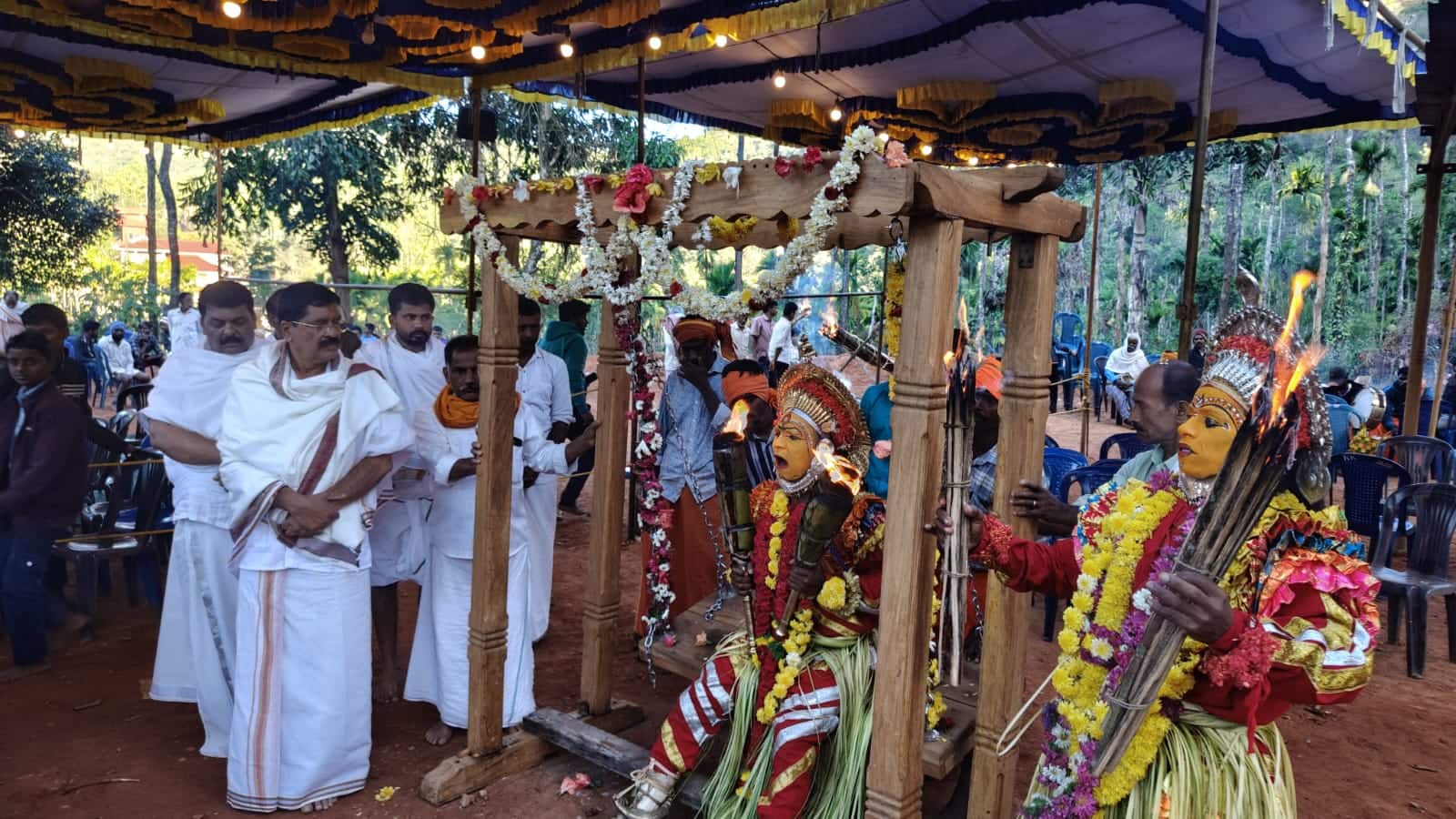 ನೇಮೋತ್ಸವದ ಅಂಗವಾಗಿ ಸುಗಂಧಭರಿತ ಹೂವುಗಳಿಂದ ದೈವದ ಸನ್ನಿಧಿಯನ್ನು ಮನೋಹರವಾಗಿ ಶೃಂಗರಿಸಲಾಗಿತ್ತು. ಸಾಲು ದೀಪಗಳ ಜಗಮಗಿಸುವ ಬೆಳಕು ರಾತ್ರಿಯ ಹೊತ್ತು ದೈವಸ್ಥಾನಕ್ಕೆ ದಿವ್ಯ ಕಳೆಯನ್ನು ನೀಡಿತ್ತು.ಫೋಟೋ: ಕಳಸದ ಹೊರನಾಡಿನ ಹೊಸದೇವರ ಚಾವಡಿ ರಾಜದೇವಸ್ಥಾನದಲ್ಲಿ ನೇಮೋತ್ಸವ ಅದ್ಧೂರಿಯಾಗಿ ನೆರವೇರಿತು.