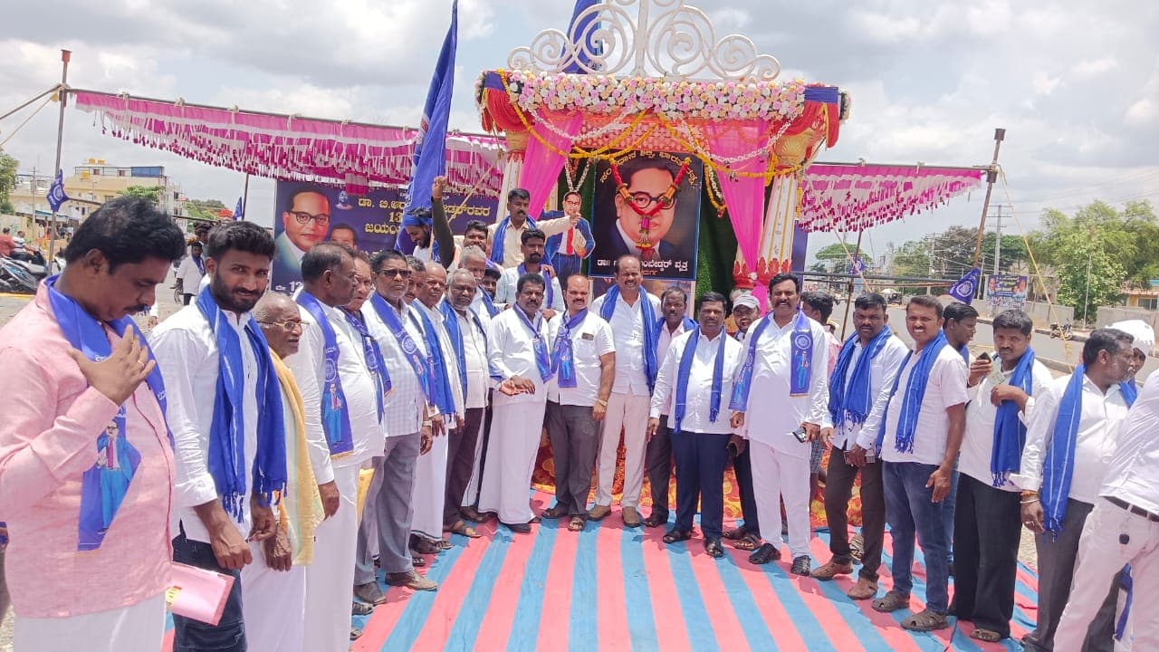 ಮುಖಂಡ ಶಿವು ಮಠ ಮಾತನಾಡಿ, ಭಾರತ ಇಂದು ಜಗತ್ತಿನ ಶಕ್ತಿಶಾಲಿ ರಾಷ್ಟ್ರವಾಗಿ ಬೆಳೆಯಲು ಅಂಬೇಡ್ಕರ್ ಅವರ ರಚಿಸಿದ ಸಂವಿಧಾನವೇ ಕಾರಣವಾಗಿದ್ದು, ಜನಸಾಮಾನ್ಯನು ಇಲ್ಲಿ ಪ್ರಧಾನಿಯಾಗುವ, ಶಾಸಕನಾಗುವ, ಸಂಸದನಾಗುವ, ಅವಕಾಶವನ್ನು ಅಂಬೇಡ್ಕರ್ ರವರು ಸಂವಿಧಾನದಲ್ಲಿ ನೀಡಿದ್ದು ಜನರಿಂದ ಮತ ಪಡೆದ ಪ್ರತಿನಿಧಿ ಅವರ ಕಷ್ಟಗಳಿಗೆ ಸ್ಪಂದಿಸಿ ಜನಸಾಮಾನ್ಯರನ್ನು ಆರ್ಥಿಕ ಸಾಮಾಜಿಕ, ಶೈಕ್ಷಣಿಕವಾಗಿ ಅಭಿವೃದ್ಧಿಗೆ ತರಲು ಸಹಕರಿಸಬೇಕು ಎಂದರು.ನಗರದ ಅಂಬೇಡ್ಕರ್ ವೃತ್ತದಿಂದ ವೀರಭದ್ರ ಸ್ವಾಮಿ ದೇವಸ್ಥಾನದವರೆಗೆ ನೂರಾರು ಯುವಕರು ಅಂಬೇಡ್ಕರ್ ಅವರ ಭಾವಚಿತ್ರಕ್ಕೆ ಪುಷ್ಪ ನಮನ ಸಲ್ಲಿಸಿ ಮೆರವಣಿಗೆಯು ನಗರದ ಗಾಂಧಿ ವೃತ್ತ, ಬಸವೇಶ್ವರ ಸರ್ಕಲ್, ರಾಜ್ ಕುಮಾರ್ ಸರ್ಕಲ್, ಮದಕರಿ ನಾಯಕ ಸರ್ಕಲ್ ಮೂಲಕ ವೀರಭದ್ರ ಸ್ವಾಮಿ ದೇವಸ್ಥಾನದವರೆಗೂ ಸಾಗಿಬಂದಿತು.