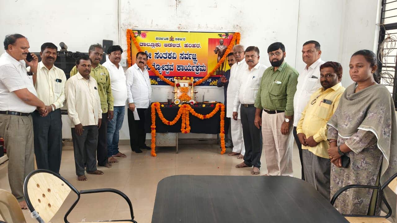 ಹರಿಹರದ ತಾಲೂಕು ಕಚೇರಿಯಲ್ಲಿ ರಾಷ್ಟ್ರೀಯ ಮತ್ತು ನಾಡಹಬ್ಬಗಳ ಆಚರಣಾ ಸಮಿತಿಯಿಂದ ಸಂತ ಕವಿ ಸರ್ವಜ್ಞ ಜಯಂತ್ಯುತ್ಸವ ಆಚರಿಸಲಾಯಿತು.