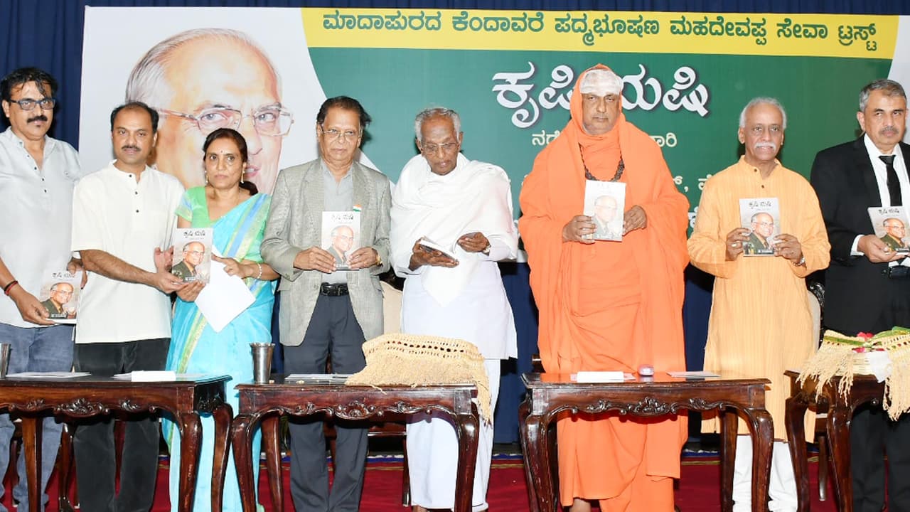 14ಎಂವೈಎಸ್ 13 - ಕೆಂದಾವರೆ ಮಹದೇವಪ್ಪ ಸೇವಾ ಟ್ರಸ್ಟ್ ಜೆಎಸ್ಎಸ್ ಮಹಿಳಾ ಕಾಲೇಜಿನಲ್ಲಿ ಆಯೋಜಿಸಿದ್ದ ಕೃಷಿ ಋಷಿ ನಡೆದು ಬಂದ ದಾರಿ ಕೃತಿಯನ್ನು ಹಿರಿಯ ವಿದ್ವಾಂಸ ಡಾ.ಗೊ.ರು. ಚನ್ನಬಸಪ್ಪ ಬಿಡುಗಡೆಗೊಳಿಸಿದರು. ಸುತ್ತೂರು ಶ್ರೀ ಶಿವರಾತ್ರಿ ದೇಶಿಕೇಂದ್ರ ಸ್ವಾಮೀಜಿ, ರಾಷ್ಟ್ರೀಯ ಜೀವ ವಿಜ್ಞಾನ ಕೇಂದ್ರದ ನಿರ್ದೇಶಕ ಪ್ರೊ.ಎಲ್.ಎಸ್. ಶಶಿಧರ, ವಿಶ್ರಾಂತ ಕುಲಪತಿ ಡಾ.ಎಂ.ಎಸ್. ಶೀಲವಂತರ್, ಹಿರಿಯ ಸಾಹಿತಿ ಕೆ.ಸಿ. ಶಿವಪ್ಪ, ಪ್ರಕಾಶ್ ಚಿಕ್ಕಪಾಳ್ಯ ಮೊದಲಾದವರು ಇದ್ದಾರೆ.ಕನ್ನಡಪ್ರಭ ವಾರ್ತೆ ಮೈಸೂರುಮಹಾಕವಿ ಕುವೆಂಪು ಅವರು ರಸಋಷಿಯಾದರೆ, ಕೃಷಿ ಕೇತ್ರಕ್ಕೆ ತಮ್ಮನ್ನು ತಾವು ಅರ್ಪಿಸಿಕೊಂಡ ಮಹದೇವಪ್ಪನವರು ‘ಕೃಷಿ ಕವಿ ಎಂದರೆ ತಪ್ಪಾಗಲಾರದು ಎಂದು ನಾಡೋಜ ಡಾ.ಗೊ.ರು. ಚನ್ನಬಸಪ್ಪ ಬಣ್ಣಿಸಿದರು.ಸರಸ್ವತಿಪುರಂನ ಜೆಎಸ್ಎಸ್ ಮಹಿಳಾ ಕಾಲೇಜಿನ ನವಜ್ಯೋತಿ ಸಭಾಂಗಣದಲ್ಲಿ ಕೆಂದಾವರೆ ಮಹದೇವಪ್ಪ ಸೇವಾ ಟ್ರಸ್ಟ್ ವತಿಯಿಂದ ಏರ್ಪಡಿಸಿದ್ದ ಕಾರ್ಯಕ್ರಮದಲ್ಲಿ ವಿಸ್ಮಯ ಬುಕ್ ಹೌಸ್ ಹೊರತಂದಿರುವ ಪದ್ಮಭೂಷಣ ಡಾ.ಎಂ. ಮಹದೇವಪ್ಪನವರ ಜೀವನಾಧರಿತ ‘ಕೃಷಿಋಷಿ ನಡೆದು ಬಂದ ದಾರಿ ಪುಸ್ತಕವನ್ನು ಶನಿವಾರ ಬಿಡುಗಡೆಗೊಳಿಸಿ ಅವರು ಮಾತನಾಡಿದರು.ಡಾ.ಎಂ.ಮಹದೇವಪ್ಪ ಅವರು, ಅಂತಾರಾಷ್ಟ್ರೀಯ ಖ್ಯಾತಿಯ ‘ಇಂಟಾನ್ ಸೇರಿ 9 ತಳಿಗಳು ಹಾಗೂ ದೇಶದ ಮೊದಲ ಹೈಬ್ರಿಡ್ ಭತ್ತದ ಜನಕ ಎಂದು ಗುರುತಿಸಲಾಗಿದೆ. ಇವರ ಸಾಧನೆಯನ್ನು ಗುರುತಿಸಿರುವ ಭಾರತ ಸರ್ಕಾರ 2005ರಲ್ಲಿ ಪದ್ಮಶ್ರೀ, 2014ರಲ್ಲಿ ಪದ್ಮಭೂಷಣ ಪ್ರಶಸ್ತಿಯನ್ನು ನೀಡಿ ಗೌರವಿಸಿವೆ. ಇವರ ಮಾರ್ಗದರ್ಶನದಲ್ಲಿ 100ಕ್ಕೂ ಅಧಿಕ ವಿದ್ಯಾರ್ಥಿಗಳು ಸಂಶೋಧನೆ ಕೈಗೊಂಡು ಪಿಎಚ್.ಡಿ ಪದವಿ ಪಡೆದುಕೊಂಡಿದ್ದಾರೆ ಎಂದರು.ಕೃಷಿ ಋಷಿ ಅಂತಃಸಾಕ್ಷಿಯ ಗ್ರಂಥವಾಗಿದ್ದು, ಮಹದೇವಪ್ಪ ಅವರು ಪ್ರಯಾಣಿಸಿದ ಹಾದಿಯ ಕುರಿತು ದಾಖಲೆ ರೂಪದಲ್ಲಿ ಈ ಪುಸ್ತಕ ಪ್ರಕಟವಾಗಿದೆ. ಕೃತಿಯ ಶೀರ್ಷಿಕೆ ಮಹದೇವಪ್ಪನವರಿಗೆ ತುಂಬಾ ಅನ್ವರ್ಥವಾಗುತ್ತದೆ. ಅಲ್ಲದೆ, ಹೆಚ್ಚು ಇಳುವರಿ ಕೊಡುವ ಭತ್ತದ ಹೊಸತಳಿಗಳನ್ನು ಆವಿಷ್ಕರಿಸುವ ಮೂಲಕ ರೈತರ ಮುಖದಲ್ಲಿ ಸಂತಸ ಮೂಡುವಂತೆ ಮಾಡಿದ ಕೀರ್ತಿ ಅವರಿಗೆ ಸಲ್ಲಿಸುತ್ತದೆ. ಎರಡು ಅವಧಿಗೆ ಧಾರವಾಡ ಕೃಷಿ ವಿಶ್ವವಿದ್ಯಾಲಯದ ಕುಲಪತಿಗಳಾಗಿ ಕೆಲಸ ನಿರ್ವಹಿಸಿದ್ದಾರೆ ಎಂದರು.ನಿವೃತ್ತ ನ್ಯಾಯಾಮೂರ್ತಿ ವಿ. ರಾಮ ಸುಬ್ರಮಣಿಯನ್ ಮಾತನಾಡಿ, ಭಾರತೀಯ ಪರಂಪರೆಯಲ್ಲಿ ಅನ್ನಕ್ಕೆ ಅತ್ಯುನ್ನುತ ಸ್ಥಾನ ನೀಡಲಾಗಿದೆ. ಇದು ನಮ್ಮ ದೇಶದ ಸಂಸ್ಕೃತಿಯಾಗಿದೆ. ಕೃತಿಯಲ್ಲಿ ಕೃಷಿಯೊಂದಿಗೆ ಸಾಗಿಬಂದ ಹಾದಿಯ ಚಿತ್ರಣ ಕಟ್ಟಿಕೊಡುವುದರ ಜೊತೆಗೆ ಮಹದೇವಪ್ಪನವರ ಶ್ರೇಷ್ಠ ವ್ಯಕ್ತಿತ್ವ ಈ ಪುಸ್ತಕದಲ್ಲಿ ಗುರುತಿಸಲಾಗಿದೆ. ಭಾರತ ಮಾತ್ರವಲ್ಲದೆ ಜಗತ್ತಿನ ಪ್ರತಿ ದೇಶವು ಕೃಷಿಯನ್ನು ಅವಲಂಬಿಸಿವೆ. ಆಹಾರ ಬೆಳೆಯುವುದು ಆಯಾಯ ಅಲ್ಲಿನ ಜನರ ಬದುಕಿನ ವಿಷಯವಾಗಿದೆ ಎಂದು ಹೇಳಿದರು.ಸುತ್ತೂರು ಮಠದ ಶ್ರೀ ಶಿವರಾತ್ರಿ ದೇಶಿಕೇಂದ್ರ ಸ್ವಾಮೀಜಿ ಮಾತನಾಡಿ, ಭತ್ತದ ತಳಿಯ ಸಂಶೋಧನೆ ನಡೆಸಿ ರೈತರಿಗೆ ಉಪಕಾರಿಯಾಗಿದ್ದರು. ವಿಷಯುಕ್ತ ಪಾರ್ಥೇನಿಯಂ ಸಸ್ಯಕ್ಕೆ ಜೈವಿಕ ಪ್ರತಿರೋಧ ಒಡ್ಡುವಂಥಹ ಸಸ್ಯಗಳನ್ನು ಬೆಳೆಸಬೇಕೆಂಬ ಅವರ ಯೋಜನೆ ದೂರದರ್ಶಿತ್ವದಿಂದ ಕೂಡಿತ್ತು. ಅದರಲ್ಲಿ ಯಶಸ್ವಿಯೂ ಆಗಿದ್ದರು ಎಂದು ಶ್ರೀಗಳು ಸ್ಮರಿಸಿದರು.ಕೃತಿ ಬಿಡುಗಡೆಗೂ ಮುನ್ನ ಪ್ರಕೃತಿ ನಿಯಮಗಳು ಮತ್ತು ಸುಸ್