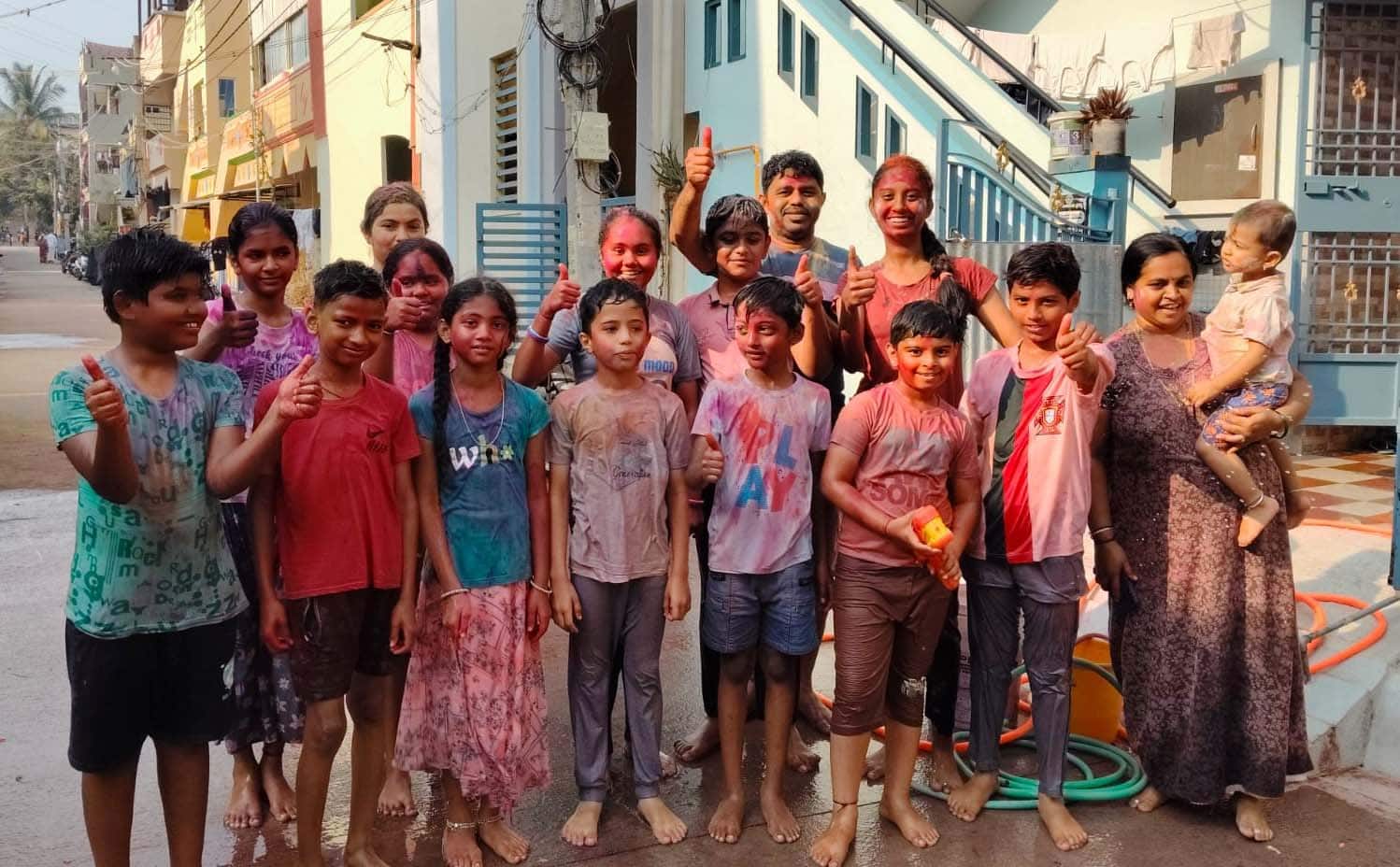 ಪ್ರತಿ ಮನೆಗಳಲ್ಲೂ ಹೆತ್ತವರು, ಅಜ್ಜ-ಅಜ್ಜಿಗೆ ಕಾಡಿ ಬೇಡಿ, ಹೆಚ್ಚಿನ ಬಣ್ಣ ತರಿಸಿಕೊಂಡಿದ್ದ, ತಾವೇ ಹಣ ಪಡೆದುಕೊಂಡು ಹೋಗಿ ಬಣ್ಣಗಳನ್ನು ತಂದುಕೊಟ್ಟ ಪುಟ್ಟ ಮಕ್ಕಳು ಪಿಚಕಾರಿ, ವಾಟರ್ ಗನ್ ಮೂಲಕ ಮನೆ ಅಂಗಳಕ್ಕಿಳಿದರು. ಮಕ್ಕಳ ಕಿವಿ ಹಿಂಡಿ, ಕೋಲು ಹಿಡಿದುಕೊಂಡು ಮಕ್ಕಳನ್ನು ಪಾಲಕರು ಮನೆಗೆ ಕರೆದೊಯ್ಯುವಂತಹ ಸ್ಥಿತಿ ಇತ್ತು.ಮಕ್ಕಳು, ವಿದ್ಯಾರ್ಥಿ, ಯುವ ಜನರು, ಯುವತಿಯರು, ಗೃಹಿಣಿಯರು, ದಂಪತಿ, ಹಿರಿಯ ನಾಗರಿಕರು ತಮ್ಮ ಸ್ನೇಹಿತರು, ಬೇರೆ ಊರಿನಿಂದ ಇಲ್ಲಿಗೆ ಓದಲು ಬಂದ ವಿದ್ಯಾರ್ಥಿಗಳು, ಹಾಸ್ಟೆಲ್ ವಿದ್ಯಾರ್ಥಿಗಳು ಬಂಧು-ಬಳಗ, ಸ್ನೇಹಿತರಿಗೆ ಬಣ್ಣ ಹಚ್ಚಿ ಸಂಭ್ರಮಿಸಿದರು.