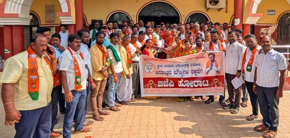 ಸರ್ಕಾರದ ವಿರುದ್ಧ ಮಾತನಾಡುವವರ ಬಾಯಿ ಮುಚ್ಚಿಸುವ ಉದ್ದೇಶದಿಂದ ರಾಜ್ಯ ಸರ್ಕಾರ ಅನುಷ್ಠಾನಕ್ಕೆ ತರುತ್ತಿರುವ ದ್ವೇಷ ಭಾಷಣ ಮತ್ತು ದ್ವೇಷ ಅಪರಾಧಗಳ ಪ್ರತಿಬಂಧಕ ವಿಧೇಯಕ ವಿರೋಧಿಸಿ ಬಿಜೆಪಿ ಮುಂಡರಗಿ ಮಂಡಲ ಕಾರ್ಯಕರ್ತರು ಬುಧವಾರ ಪ್ರತಿಭಟನೆ ನಡೆಸಿ, ತಹಸೀಲ್ದಾರ್ಗೆ ಮನವಿ ಸಲ್ಲಿಸಿದರು.