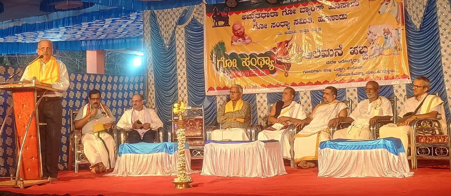 ಹೊಸಾಡಿನ ಅಮೃತಧಾರಾ ಗೋಬ್ಯಾಂಕ್ನಲ್ಲಿ ಗುರುವಾರ ಪ್ರಾರಂಭವಾದ ಆಲೆಮನೆ ಹಬ್ಬದ ಉದ್ಘಾಟನಾ ಸಮಾರಂಭ ಉದ್ದೇಶಿಸಿ ಅವರು ಮಾತನಾಡಿದರು. ವೇದಮಂತ್ರಗಳ ನಾದದಲ್ಲಿ ಗೋಮಾತೆಯ ಗೌರವವನ್ನು ಹೊತ್ತೊಯ್ಯುತ್ತಾ, ಯಜ್ಞ-ಯಾಗಗಳ ಪವಿತ್ರ ಜ್ವಾಲೆಯಲ್ಲಿ ಗವ್ಯೋತ್ಪನ್ನಗಳ ಮಹಿಮೆಯನ್ನು ಸ್ಥಾಪಿಸುತ್ತಾ, ಮನೆಮನೆಗಳಲ್ಲಿ ಧರ್ಮದ ದೀಪ ಅವರು ಬೆಳಗಿಸಿದವರು ವೈದಿಕರು. ಈ ಬಾರಿ ಆಲೆಮನೆ ಹಬ್ಬಕ್ಕೆ ವೈದಿಕರಿಂದಲೇ ಚಾಲನೆ ನೀಡಲಾಗಿದ್ದು, ವೈದಿಕರ ಸಮಾವೇಶವನ್ನೂ ಆಯೋಜಿಸಲಾಗಿದೆ ಎಂದರು.ವೈದಿಕರ ಸಮಾವೇಶದಲ್ಲಿ ಹಿರಿಯ ವೇದಜ್ಞ ಸುಬ್ರಹ್ಮಣ್ಯ ಶರ್ಮಾ ಚಿತ್ರಿಗೇಮಠ ಹಾಗೂ ಇತರ ವೈದಿಕರನ್ನು ಗೌರವಿಸಲಾಯಿತು. ಬಳಿಕ ವೇ. ಪರಮೇಶ್ವರ ಮಾರ್ಕಾಂಡೆ ಗೋಕರ್ಣ ಮಾತನಾಡಿ, ಮನುಷ್ಯರ ದಿನಚರಿ ಗೋವಿಲ್ಲದೇ ನಡೆಯದು. ಅಗ್ನಿ ಉಪಾಸನೆಗೂ ಗವ್ಯೋತ್ಪನ್ನ ಅಗತ್ಯ. ಪಂಚಗವ್ಯವು ಶರೀರ ಶುದ್ಧಿಯಷ್ಟೇ ಅಲ್ಲ, ಆತ್ಮಶುದ್ಧಿಗೂ ಸಹಾಯಕ. ಪ್ರತಿ ಮನೆಗಳಲ್ಲಿ ಗೋ ಸಾಕುವುದು ಕಷ್ಟವಾದ ಸಂದರ್ಭದಲ್ಲಿ ಗೋಶಾಲೆಗಳು ಅವಶ್ಯ ಎಂದರು.