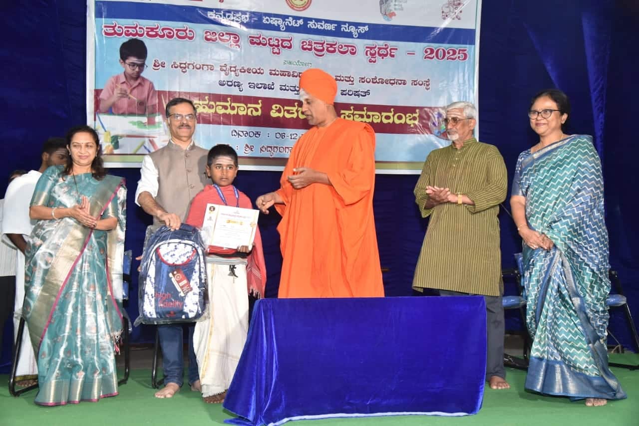 ತುಮಕೂರಿನ ಸಿದ್ಧಗಂಗಾ ಮಠದಲ್ಲಿ ವಿದ್ಯಾರ್ಥಿಗಳ ಪ್ರಾರ್ಥನೆ ಬಗ್ಗೆ ಕೇಳಿದ್ದೆ. ಇವತ್ತು ಕಣ್ಣಾರೆ ನೋಡಿದ್ದೇನೆ. ಹೀಗಾಗಿ ನನಗೆ ಧನ್ಯತಾ ಭಾವ ಮೂಡಿದೆ ಎಂದ ಅವರು ನಾನು ಜಗತ್ತಿನ ಹಲವು ಕಡೆ ಹೋದಾಗ ಹಲವಾರು ಮಂದಿ ಭೇಟಿಯಾಗುತ್ತಾರೆ. ಅವರೆಲ್ಲಾ ತಾವು ಇಷ್ಟು ಶಿಸ್ತು ಬದ್ಧರಾಗಿ ಬದುಕುತ್ತಿರುವುದಕ್ಕೆ ಕಾರಣ ಸಿದ್ಧಗಂಗಾ ಮಠ ಎಂದು ಹೆಮ್ಮೆಯಿಂದ ಹೇಳುತ್ತಾರೆ ಎಂದರು.ಮೊಬೈಲ್ ಬಿಡಿ , ಚಿತ್ರ ರಚಿಸಿ ಎಂದು ನೀಡಿದ ಕರೆಗೆ ರಾಜ್ಯದ ವಿವಿಧ ಭಾಗಗಳಿಂದ ಕಲಾ ಪ್ರತಿಭೆಯುಳ್ಳವರು ತಮ್ಮ ಕಲಾ ಕೌಶಲ ತೋರಲು ಬಂದಿರುವುದು ನನಗೆ ಸಂತಸ ತಂದಿದೆ. ಕಣ್ಣಿಂದ ನೋಡಿದ್ದನ್ನು ವಾಸ್ತವವಾಗಿ ರಚಿಸಿ ಕೊಡಲು ಮಕ್ಕಳು ಪ್ರತಿಭಾವಂತರಾಗಿರಬೇಕು. ಮತ್ತು ಕಲಾ ಸೂಕ್ಷ್ಮತೆಯನ್ನು ಬಲ್ಲವರಾಗಿರಬೇಕು ಎಂದರು.ಸಾನಿಧ್ಯ ವಹಿಸಿ ಮಾತನಾಡಿದ ಸಿದ್ಧಗಂಗಾ ಮಠದ ಪೀಠಾಧ್ಯಕ್ಷ ಸಿದ್ದಲಿಂಗ ಸ್ವಾಮೀಜಿ ಮಾತನಾಡಿ, ಟಿವಿ,ಮೊಬೈಲ್ ಪ್ರಭಾವದಿಂದ ಮಕ್ಕಳಲ್ಲಿ ಹುದುಗಿರುವ ಪ್ರತಿಭೆ ಹೊರ ಹೊಮ್ಮಲು ಸಾಧ್ಯವಾಗುತ್ತಿಲ್ಲ. ಆದರೂ ಎಲ್ಲ ಮಕ್ಕಳಲ್ಲೂ ಪ್ರತಿಭೆ ಸುಪ್ತವಾಗಿ ಅಡಗಿದ್ದು ಅದನ್ನು ಹೊರ ತೆಗೆಯಲು ಕನ್ನಡಪ್ರಭ ವೇದಿಕೆ ಕಲ್ಪಿಸಿಕೊಟ್ಟಿದೆ ಎಂದರು.ಸಾಮಾನ್ಯ ಕಲಾವಿದನಾಗಿ ರೂಪಗೊಳ್ಳುವ ವ್ಯಕ್ತಿ ನಾಳಿನ ದಿನಗಳಲ್ಲಿ ಪ್ರಪಂಚವೇ ಗುರುತಿಸುವ ಹಾಗೇ ಮಹಾನ್ ಕಲಾವಿದನಾಗಿ ಪ್ರಸಿದ್ಧಿ ,ಪ್ರಶಸ್ತಿ ಪಡೆಯಬಹುದು ಎಂದರಲ್ಲದೆ ಇಂತಹ ಕಾರ್ಯುಕ್ರಮಗಳು ಆಗಾಗ್ಗೆ ನೆಡಯುವುದರಿಂದ ಪ್ರತಿಭಾವಂತರು ಬೆಳಕಿಗೆ ಬರುವರು. ಸರಿಯಾದ ಪ್ರೋತ್ಸಾಹ ಸಿಕ್ಕರೆ ವಜ್ರಕ್ಕೆ ಹೊಳಪು ಬಂದಂತಾಗುತ್ತದೆ ಎಂದರು.ಬೆಳಿಗ್ಗೆಯಿಂದ ಸಿದ್ಧಗಂಗಾ ಮಠದಲ್ಲಿ ಮಕ್ಕಳು ತಮ್ಮ ಕಲ್ಪನೆಯ ಚಿತ್ರಗಳನ್ನು ಬರೆದಿದ್ದಾರೆ. ಮುಂದೆ ಈ ಮಕ್ಕಳು ದೊಡ್ಡ ಕಲಾವಿದರಾಗಿ ರೂಪುಗೊಳ್ಳಲಿ ಎಂದು ತಿಳಿಸಿದರು. ಇದೇ ವೇಳೆ ವಿಜೇತರಾದ ಮಕ್ಕಳಿಗೆ ಬಹುಮಾನವನ್ನು ವಿತರಿಸಲಾಯಿತು. ಕಾರ್ಯಕ್ರಮದಲ್ಲಿ ರವಿ ಹೆಗಡೆ ದಂಪತಿಯನ್ನು ಶ್ರೀ ಮಠದಿಂದ ಗೌರವಿಸಲಾಯಿತು.