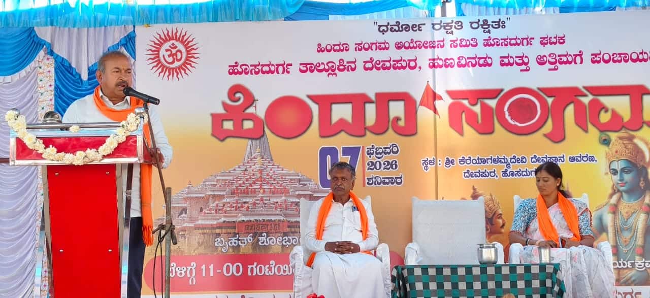 ಹಿಂದು ಸಂಗಮ ಕಾರ್ಯಕ್ರಮದಲ್ಲಿ ಶಿವಮೊಗ್ಗ ಶಾಸಕ ಚನ್ನಬಸಪ್ಪ ಮಾತನಾಡಿದರು.