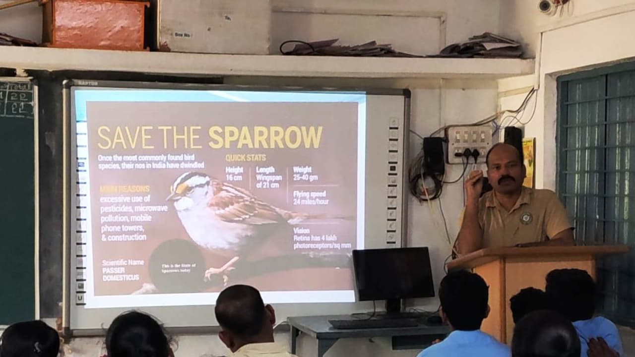 ಸಂಶೋಧಕ ಮಂಜುನಾಥ ನಾಯಕ ಮಾತನಾಡಿ, ಮಾ. 20 ವಿಶ್ವ ಗುಬ್ಬಚ್ಚಿ ದಿನ ಆಚರಿಸಲಾಗುತ್ತದೆ. ಬಿಸಿಲಿನ ಪ್ರಖರತೆಯಿಂದ ಪಕ್ಷಿ- ಪ್ರಾಣಿಗಳು ಸಾವಿಗೀಡಾಗುತ್ತವೆ. ಆದರಿಂದ ವಿದ್ಯಾರ್ಥಿಗಳು ತಮ್ಮ ಮನೆ ಅಂಗಳ, ತಾರಸಿ ಮೇಲೆ ನೀರು ತುಂಬಿದ ಮಡಕೆ, ಮಣ್ಣಿನ ಪಾತ್ರೆಗಳನಿಟ್ಟು ಪಕ್ಷಿಗಳಿಗೆ ಅನುಕೂಲ ಮಾಡಿಕೊಡಬೇಕೆಂದು ವಿನಂತಿಸಿದರು.ಇದೇ ಸಂದರ್ಭದಲ್ಲಿ ವಿದ್ಯಾರ್ಥಿ ಮತ್ತು ಎಲ್ಲ ಸಿಬ್ಬಂದಿಗೆ ಪ್ರಶಾಂತ ಸಾಗರ ಅವರು ನಿರ್ದೇಶಿಸಿ ನಿರ್ಮಿಸಿದ ಕೌತುಕ ಮಂಗಟ್ಟೆ ಜೀವನಕ್ರಮದ ಕಿರುಚಿತ್ರ ಪ್ರದರ್ಶಿಸಲಾಯಿತು. ಶಿಕ್ಷಕಿ ಎಸ್.ಎಲ್. ಮರಿಗೌಡರ ಸ್ವಾಗತಿಸಿದರು. ಶಿಕ್ಷಕ ಎಸ್.ಜಿ. ಕಡಿವಾಲ ನಿರೂಪಿಸಿದರು. ಬಿ.ಆರ್. ಹಳೆಮನಿ ವಂದಿಸಿದರು. ಕಾರ್ಯಕ್ರಮದಲ್ಲಿ ಮುಖ್ಯಶಿಕ್ಷಕ ಐ.ಎಂ. ಹುರಕಡ್ಲಿ, ಬಿ.ಎಚ್. ಲಕ್ಕಲಕಟ್ಟಿ, ಎಸ್.ಪಿ. ಹಿರೇಮನಿ ಉಪಸ್ಥಿತರಿದ್ದರು.