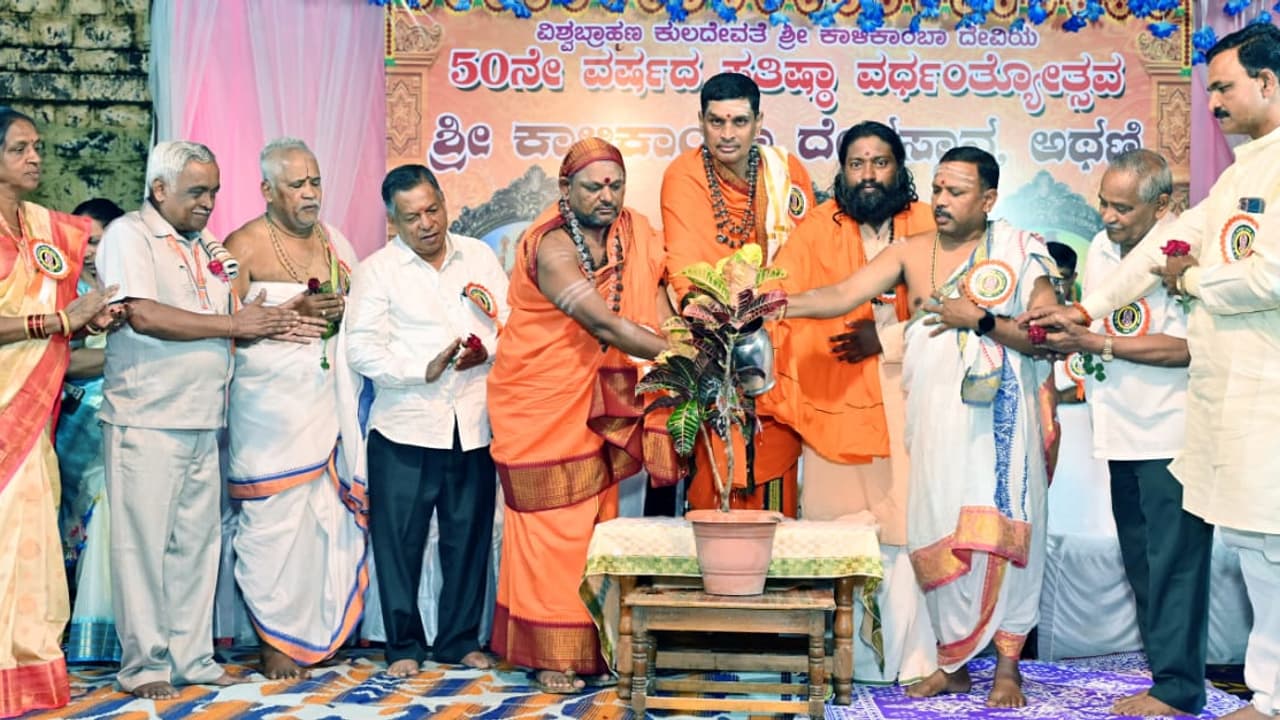 ಅಥಣಿ ಪಟ್ಟಣದ ಕಾಳಿಕಾ ದೇವಸ್ಥಾನ ಒಂದು ಜಾಗೃತ ಸ್ಥಾನವಾಗಿದೆ. ದೇವಸ್ಥಾನ ಪ್ರತಿಷ್ಠಾಪನೆಗೊಂಡು ಇಂದು ಸುವರ್ಣ ಮಹೋತ್ಸವ ಆಚರಿಸಿಕೊಳ್ಳುತ್ತಿದೆ. ಮುಂಬರುವ ದಿನಗಳಲ್ಲಿ ಶತಮಾನೋತ್ಸವ ಕಾರ್ಯಕ್ರಮ ಇನ್ನಷ್ಟು ಅದ್ಧೂರಿಯಾಗಿ ನಡೆಯಲಿ ಎಂದು ಹಾರೈಸಿದರು.ಈ ವೇಳೆ ಮನೋಹರಿ ಬಡಿಗೇರ ಭರತನಾಟ್ಯ ಪ್ರದರ್ಶಿಸಿದಳು. ವಿವಿಧ ಕ್ಷೇತ್ರದಲ್ಲಿ ಸಾಧನೆ ಮಾಡಿದ ವಿಶ್ವಕರ್ಮ ಸಮುದಾಯದವರನ್ನು ಸಮಾರಂಭದಲ್ಲಿ ಸನ್ಮಾನಿಸಲಾಯಿತು. ಶಂಕರ ಮಿರಜಕರ ಪ್ರಾಸ್ತಾವಿಕವಾಗಿ ಮಾತನಾಡಿದರು. ಈ ವೇಳೆ ವಿದ್ಯಾಶಂಕರ ಸ್ವಾಮೀಜಿ, ಸಿದ್ದಯ್ಯ ಸ್ವಾಮೀಜಿ, ವಿಶ್ವನಾಥ ಸ್ವಾಮೀಜಿ, ಅಕ್ಷಯ ಶರ್ಮಾ, ಭೀಮರಾವ್ ಬಡಿಗೇರ, ಚೆನ್ನಪ್ಪ ಬಡಿಗೇರ, ಬರ್ಮು ಬಡಿಗೇರ, ಉಮೇಶ್ ಪತ್ತಾರ, ಪ್ರಭಾಕರ ಪೋತದಾರ, ರವೀಂದ್ರ ಬಡಿಗೇರ, ವೀಣಾ ಬಡಿಗೇರ, ಕುಮಾರ ಬಡಿಗೇರ, ಶಾರದಾ ಬಡಿಗೇರ, ಸುರೇಶ್ ಬಡಿಗೇರ್, ವೀರಭದ್ರ ಬಡಿಗೇರ, ಗಂಗಾಧರ ಕಂಬಾರ ಸೇರಿದಂತೆ ಇನ್ನಿತರರು ಉಪಸ್ಥಿತರಿದ್ದರು. ಭೀಮರಾವ್ ಬಡಿಗೇರ ಸ್ವಾಗತಿಸಿದರು, ಪ್ರಭಾಕರ ಪೋತದಾರ ವಂದಿಸಿದರು.