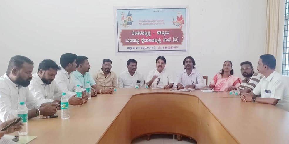 ರಾಜ್ಯದ ಮುಖ್ಯಮಂತ್ರಿ ಸಿದ್ದರಾಮಯ್ಯ ನೂತನತೆಗಳನ್ನು ಬಗೆಹರಿಸಿ ಎಸ್ಟಿ ಜನಾಂಗದ ಶೇ.7ರ ಮೀಸಲಾತಿ ಅನುಪಾತದ ಮೂಲಕ ಉದ್ಯೋಗ ನೇಮಕಾತಿ ಮಾಡಬೇಕೆಂದು ಆಗ್ರಹಿಸಿದರು. ವಿಫಲವಾದರೆ ಸರ್ಕಾರದ ವಿರುದ್ಧ ಬೀದಿ ಗಿಳಿದು ಹೋರಾಟ ನಡೆಸುವ ಎಚ್ಚರಿಕೆ ನೀಡಿದರು.ಕ್ಷೇಮಾಭಿವೃದ್ಧಿ ಸಂಘದ ರಾಜ್ಯ ಪ್ರಧಾನ ಕಾರ್ಯದರ್ಶಿ ಟಿ.ಜೆ.ತಿಪ್ಪೇಸ್ವಾಮಿ ಮಾತನಾಡಿ, ವಾಲ್ಮೀಕಿ ನಿಗದ ಕೋಟ್ಯಂತರ ಹಣವನ್ನು ಸರ್ಕಾರ ದುರುಪಯೋಗ ಪಡಿಸಿಕೊಳ್ಳುವ ಮೂಲಕ ವಾಲ್ಮೀಕಿ ಸಮುದಾಯದ ಏಳಿಗೆಗೆ ಕೊಡಲಿ ಪೆಟ್ಟುನೀಡಿದೆ. ಪ್ರತಿಯೊಂದು ಹಂತದಲ್ಲೂ ವಾಲ್ಮೀಕಿ ಸಮಾಜಕ್ಕೆ ಸರ್ಕಾರ ಅಲಕ್ಷಿಸುತ್ತಾ ಬಂದಿದೆ. ಕಳೆದ ಎರಡು ವರ್ಷಗಳ ಹಿಂದೆ ರಾಜ್ಯ ಸರ್ಕಾರಕ್ಕೆ ಎಚ್ಚರಿಕೆ ನೀಡಲು ರಾಜನಹಳ್ಳಿ ಸ್ವಾಮೀಜಿ ಪಾದಯಾತ್ರೆ ನಡೆಸಿ ಜನಾಂಗವನ್ನು ಜಾಗೃತಿಗೊಳಿಸಿ ಸರ್ಕಾರಕ್ಕೆ ಎಚ್ಚರಿಕೆ ನೀಡಿದರು. ಆದರೂ ಸರ್ಕಾರ ಸಮುದಾಯದೊಂದಿಗೆ ಚರ್ಚಿಸದೆ ಏಕಪಕ್ಷಿಯಾಗಿ ಶೇ.7ರ ಬದಲು 3ರ ಮೀಸಲಾತಿ ಜಾರಿಗೊಳಿಸಲು ಹೊರಟಿರುವುದು ನೋವಿನ ಸಂಗತಿ ಅಗತ್ಯವಿದ್ದರೆ ಸರ್ಕಾರದ ವಿರುದ್ದ ರಾಜ್ಯದ ಎಲ್ಲಾ ವಾಲ್ಮೀಕಿ ಸಮುದಾಯದ ಸಂಘಟನೆಗಳು ಬೀದಿಗಿಳಿದು ಹೋರಾಟ ನಡೆಸುತ್ತೇವೆಂದರು.