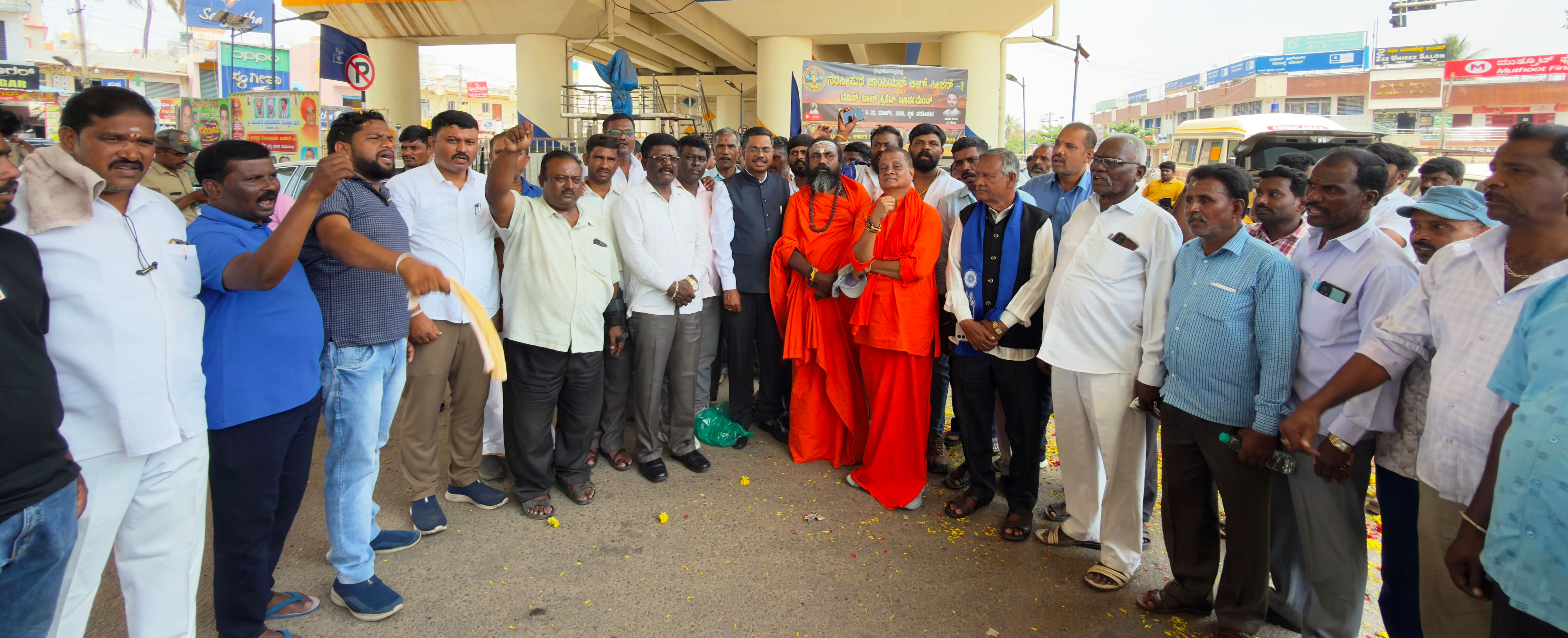 ಪೋಟೋ 4 : ದಾಬಸ್ಪೇಟೆಯಲ್ಲಿ ಒಳ ಮೀಸಲಾತಿ ಜಾರಿಗೆ ಆಗ್ರಹಿಸಿ ಹಮ್ಮಿಕೊಂಡಿರುವ ಪಾದೆಯಾತ್ರೆಗೆ ಆದಿಜಾಂಬವ ಗುರುಪೀಠದ ಷಡಕ್ಷರ ಮುನಿಸ್ವಾಮೀಜಿ, ಪಾಲನಹಳ್ಳಿ ಮಠದ ಡಾ.ಶ್ರೀ ಸಿದ್ದರಾಜು ಸ್ವಾಮೀಜಿಯವರನ್ನು ದಲಿತ ಮುಖಂಡರು ಸ್ವಾಗತಿಸಿದರು.