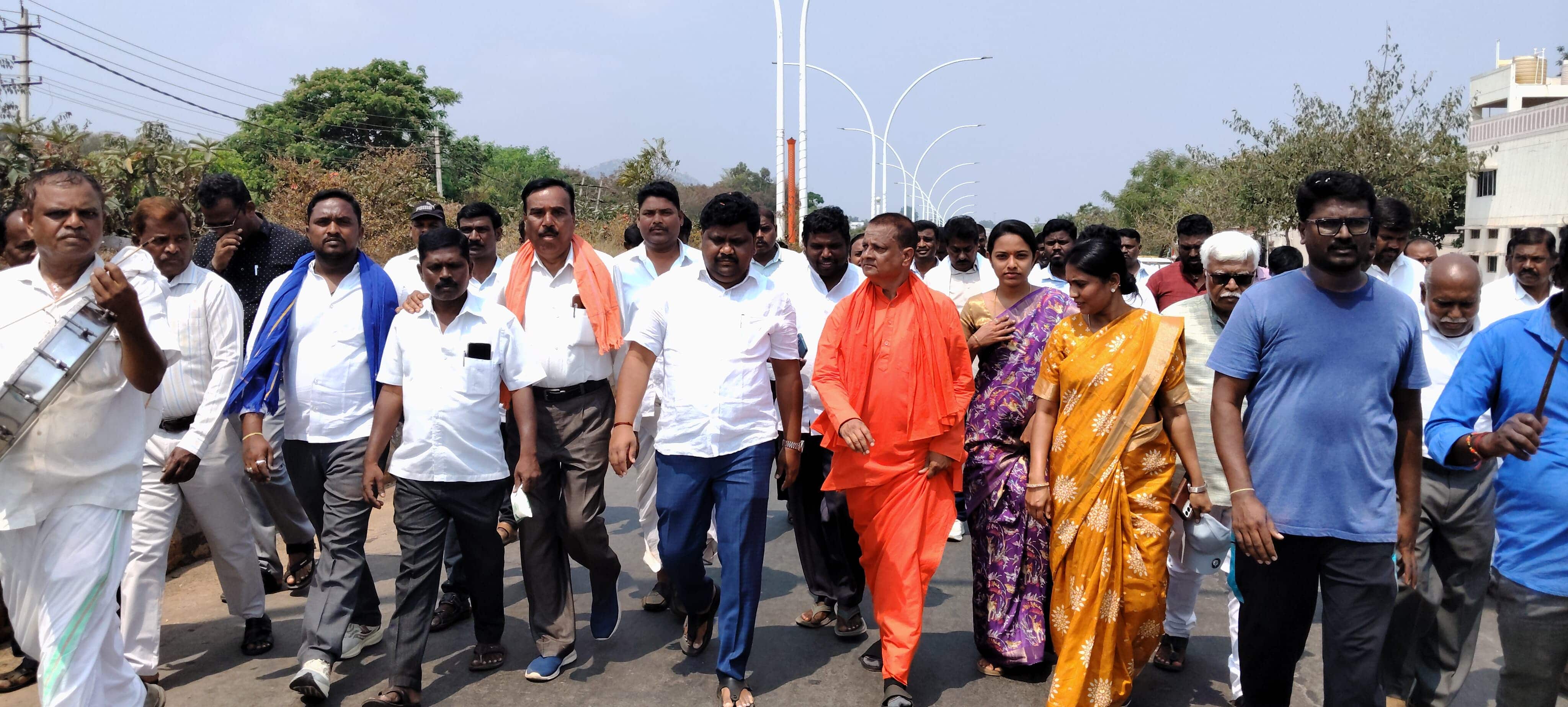 ಮಾದಿಗರ ಒಳಿತಿಗಾಗಿ ಪಾದಯಾತ್ರೆ ಮಾಡುತ್ತಿರುವ ಷಡಕ್ಷರಮುನಿ ಸ್ವಾಮೀಜಿಯವರಿಗೆ ಸಮುದಾಯದ ಜನತೆ ಅಭೂತಪೂರ್ವ ಬೆಂಬಲ ನೀಡಬೇಕು. ಎಲ್ಲ ಪಕ್ಷಗಳಲ್ಲಿ ಇರುವ ಮಾದಿಗ ಸಮುದಾಯದ ಮುಖಂಡರು ಒಂದಾಗಿ ನಿಲ್ಲಬೇಕು. ಸಮುದಾಯದ ಹಿತ ಕಾಯಲು ಸಾಧ್ಯವಾಗದಿದ್ದರೆ ಅವರೇಕೆ ರಾಜಯೀಯ ಮಾಡಬೇಕು ಎಂದು ಪ್ರಶ್ನಿಸಿದರು.ಜಿಲ್ಲಾ ಪಂಚಾಯಿತಿ ಮಾಜಿ ಸದಸ್ಯರಾದ ಬಿ.ಪಿ ಪ್ರಕಾಶಮೂರ್ತಿ, ಎನ್.ನರಸಿಂಹರಾಜು, ನಗರಸಭೆ ಮಾಜಿ ಸದಸ್ಯೆ ತಾರಾದೇವಿ, ಕೆ.ಪಿ ಶ್ರೀನಿವಾಸ್, ಓಂಕಾರ್, ನಿವೃತ್ತ ನೌಕರ ಸಂಘದ ವೀರಣ್ಣ, ರೇವಣಸಿದ್ದಪ್ಪ, ನಿವೃತ್ತ ಮುಖ್ಯ ಇಂಜಿನಿಯರ್ ಕೆ.ಜೆ ಜಗದೀಶ್, ನಿವೃತ್ತ ಎಂಜಿನಿಯರ್ ಪಾತಣ್ಣ, ಡಿ.ಟಿ ಜಗನ್ನಾಥ್, ಬಾಬುರಾಜ್ , ಶ್ರೀನಿವಾಸ ಮೂರ್ತಿ, ಜಾಲಿಕಟ್ಟೆ ಗೌತಮ್, ಲಕ್ಷ್ಮೀಸಾಗರ ದೇವರಾಜ್ , ನವನೀತ ಸೇರಿದಂತೆ ಸಂಘದ ಪದಾಧಿಕಾರಿಗಳು ಸೇರಿದಂತೆ ಸಮುದಾಯದ ಹೋರಾಟಗಾರರು ಹಾಜರಿದ್ದರು.