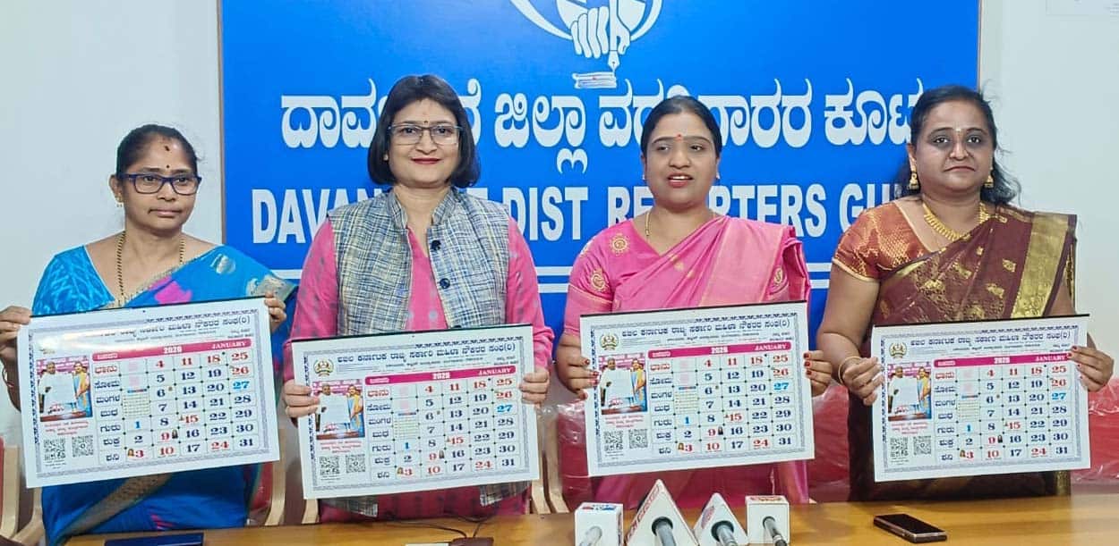 ದಾವಣಗೆರೆಯಲ್ಲಿ ಬುಧವಾರ ಸುದ್ದಿಗೋಷ್ಠಿ ವೇಳೆ ಸಂಘದ ರಾಜ್ಯಾಧ್ಯಕ್ಷೆ ರೋಶನಿ ಗೌಡ, ಖಜಾಂಚಿ ಡಾ.ವೀಣಾ ಕೃಷ್ಣಮೂರ್ತಿ, ಎಂ.ಆಶಾ ರಾಣಿ, ಶೋಭ ಅಖಿಲ ಕರ್ನಾಟಕ ರಾಜ್ಯ ಸರ್ಕಾರಿ ಮಹಿಳಾ ನೌಕರರ ಸಂಘದ ಕ್ಯಾಲೆಂಡರ್ ಬಿಡುಗಡೆ ಮಾಡಿದರು.