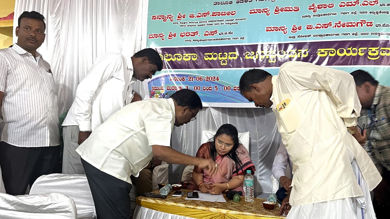 ಗಜೇಂದ್ರಗಡ ಪಟ್ಟಣದ ಟಿಟಿಡಿ ಕಲ್ಯಾಣ ಮಂಟಪದಲ್ಲಿ ತಾಲೂಕಾಡಳಿತದಿಂದ ನಡೆದ ತಾಲೂಕು ಮಟ್ಟದ ಜನಸ್ಪಂದನ ಕಾರ್ಯಕ್ರಮದಲ್ಲಿ ಜಿಲ್ಲಾಧಿಕಾರಿ ವೈಶಾಲಿ ಎಂ.ಎಲ್. ಅವರು ಜನರ ವಿವಿಧ ಸಮಸ್ಯೆಗಳಿಗೆ ಪರಿಹಾರ ಸೂಚಿಸಿದರು.