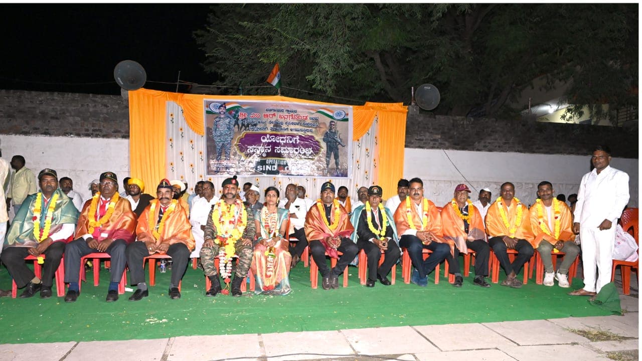 ತಾಲೂಕಿನ ಪಡಗಾನೂರ ಗ್ರಾಮದ ನಿವೃತ್ತ ಯೋಧ ಮಲ್ಲು ಬನಗೊಂಡ ಅವರು ಸುಮಾರು 17 ವರ್ಷಗಳ ಕಾಲ ವಿವಿಧ ವಿಭಾಗಗಳಲ್ಲಿ ಸೇವೆ ಸಲ್ಲಿಸಿ ನಿವೃತ್ತಿಯ ನಂತರ ಬುಧವಾರ ಸ್ವಗ್ರಾಮಕ್ಕೆ ಆಗಮಿಸಿದರು. ಈ ವೇಳೆ ಅಭಿನಂದನ ಕಾರ್ಯಕ್ರಮದಲ್ಲಿ ಮಾತನಾಡಿದರು. ಮಲ್ಲು ಬನಗೊಂಡ ಅವರಂತೆ ಈ ಗ್ರಾಮದಲ್ಲಿ ಯುವಕರು ಸೈನ್ಯ ಸೇರುವಂತಾಗಲಿ ಎಂದು ಕಾರ್ಗಿಲ್ ಯುದ್ಧ ಹಾಗೂ ಆಪರೇಷನ್ ಸಿಂದೂರ ಸಂದರ್ಭದಲ್ಲಿ ಸೈನಿಕರ ಧೈರ್ಯ ಸಾಹಸದಿಂದ ದೇಶವನ್ನು ರಕ್ಷಿಸುತ್ತಿರುವ ಸೈನಿಕರು ದೇಶದ ನಿಜವಾದ ಬೆನ್ನೆಲುಬಾಗಿದ್ದಾರೆ ಎಂದರು.ಮೊದಲು ದೇವರಹಿಪ್ಪರಗಿ ಪಟ್ಟಣದ ಡಾ.ಬಿ.ಆರ್.ಅಂಬೇಡ್ಕರ್ ವೃತ್ತದಲ್ಲಿ ಅದ್ಧೂರಿ ಸ್ವಾಗತ ಕೋರಲಾಯಿತು. ತೆರೆದ ಜೀಪ್ನಲ್ಲಿ ಅದ್ದೂರಿ ಮೆರವಣಿಗೆ ಮೂಲಕ ಗ್ರಾಮಕ್ಕೆ ಬರಮಾಡಿಕೊಳ್ಳಲಾಯಿತು. ಸಾನಿಧ್ಯವನ್ನು ಸೋಮೇಶ್ವರ ದೇವಸ್ಥಾನ ಸಮಿತಿ ಅಧ್ಯಕ್ಷ ವೇ.ಮೂ ಅಯ್ಯಪ್ಪ ಸ್ವಾಮಿಗಳು ಹಿರೇಮಠ ವಹಿಸಿದ್ದರು.ಈ ವೇಳೆ ವಿಡಿಸಿಸಿ ಬ್ಯಾಂಕ್ ನಿರ್ದೇಶಕ ಹಣಮಂತ್ರಾಯಗೌಡ ಪಾಟೀಲ, ಗ್ರಾಪಂ ಅಧ್ಯಕ್ಷರ ಪ್ರತಿನಿಧಿ ಗುರುರಾಜ ಆಕಳವಾಡಿ. ಉಪಾಧ್ಯಕ್ಷರ ಪ್ರತಿನಿಧಿ ಸುಭಾಸ ಹೊಸಟ್ಟಿ. ತಾಲೂಕ ಕಾನಿಪ ಅಧ್ಯಕ್ಷ ಸಂಗಮೇಶ ಉತ್ನಾಳ. ಮುಖಂಡರಾದ ಎಲ್.ಕೆ.ರಾಮಪ್ಪ, ಬೀರು ಹಳ್ಳಿ. ಸಿದ್ದು ಬೆಳ್ಳಿ.ನಿಂಗನಗೌಡ ಪಾಟೀಲ. ಜಟ್ಟೆಪ್ಪ ಪೂಜಾರಿ, ಕರೆಪ್ಪ ಪೂಜಾರಿ, ಭೂತಾಳಿ ಸಿದ್ದ ಅಯ್ಯಪ್ಪ ಸಾತಿಹಾಳ. ಸೋಮು ಪತ್ತಾರ, ಸೋಮನಗೌಡ ಪಾಟೀಲ, ಶಂಕರ ಸಾತಿಹಾಳ, ಎಸ್ಡಿಎಂಸಿ ಅಧ್ಯಕ್ಷ ಮಲ್ಲು ಬನಗೊಂಡ. ಮಾಯಪ್ಪ ಹೊಸಟ್ಟಿ. ಗ್ರಾಮದ ಯೋಧರಾದ ರೇವಣಸಿದ್ಧ ಸಾತಿಹಾಳ. ಮುತ್ತು ಸೇರಿಕಾರ, ಬಸು ಹೊಸಟ್ಟಿ, ಬೀರು ಹುಣಚ್ಯಾಳ, ಹಣಮಂತ ಮುರಾಳ, ದಯಾನಂದ ಆಕಳವಾಡಿ, ಸೋಮಪ್ಪ ಬನಗೊಂಡ, ಸುರೇಶ ವಿಜಾಪುರ, ರಾಜು ಚಿಗರಿ, ಕೆಂಚಪ್ಪ ಬನಗೊಂಡ, ಸಾಯಿಬಣ್ಣ ಕೊಟಾರಗಸ್ತಿ, ಸೋಮು ಹುಗ್ಗಿ, ಪ್ರಶಾಂತ ಹಳ್ಳಿ. ವಿಠ್ಠಲ ಹಳ್ಳಿ ಸೇರಿ ಸ್ಥಳೀಯರು ಇದ್ದರು. ಸುರೇಶ ವಗ್ಗರ ನಿರೂಪಿಸಿದರು. ಮಾಳು ಮಾಸ್ತರ ಮುರಾಳ ವಂದಿಸಿದರು.