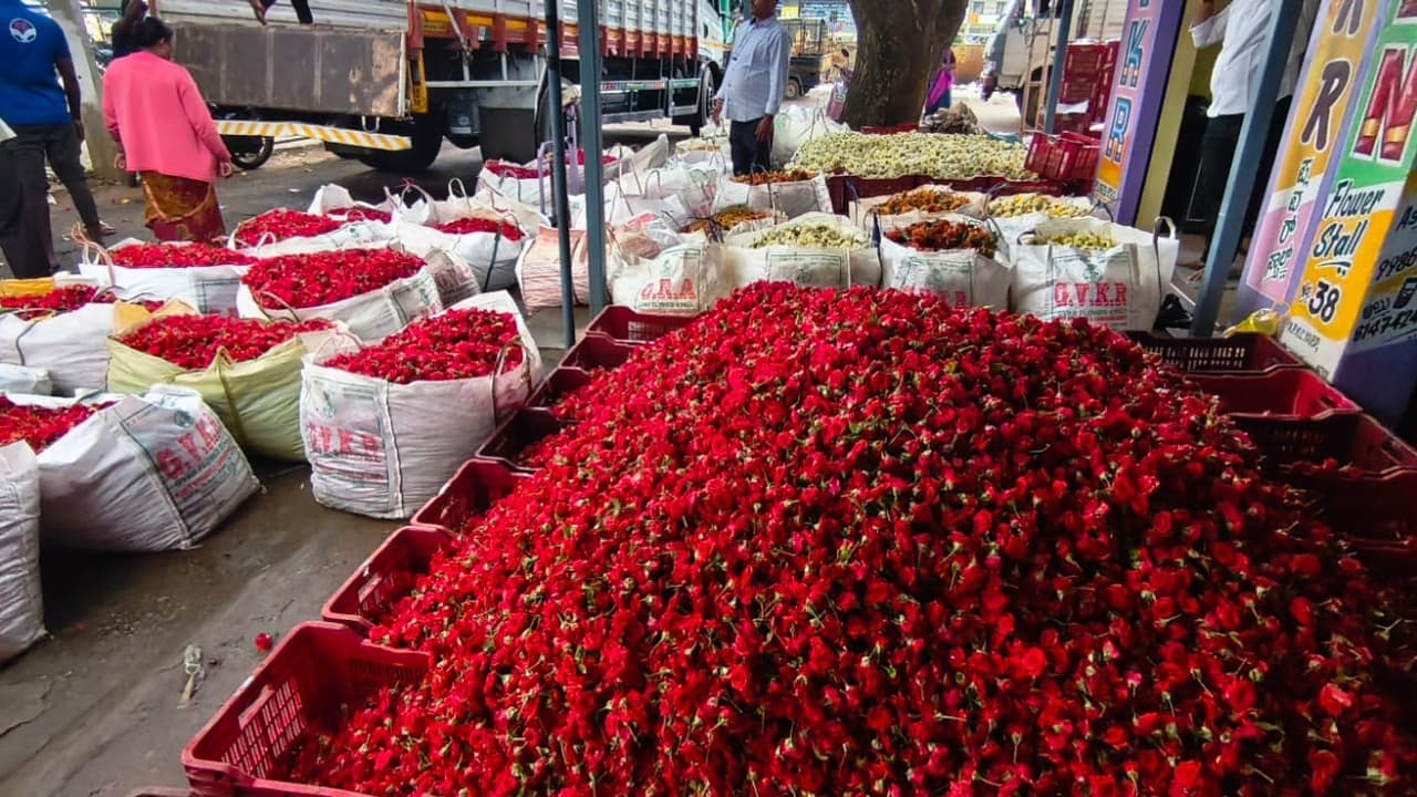 ವಿವಿಧ ಹೂ ದರ ಗಗನಕ್ಕೆವಾರದ ಹಿಂದೆ ಮಲ್ಲಿಗೆ ಮೊಗ್ಗು ಕೆಜಿಗೆ 150-200 ರೂ.ಗಳೊಳಗಿದ್ದುದು ಮಂಗಳವಾರದಂದು ಕೆ.ಜಿ. ಮಲ್ಲಿಗೆ ಹೂವು ರೂ 1000 ರೂ. ದಾಟಿತ್ತು. 400-500 ರೂ. ಇದ್ದ ಕನಕಾಂಬರ ಹೂವು 1400-2000ರೂ, ಮಳ್ಳೆ ಹೂ ಕೆಜಿಗೆ 1000-1200 ರೂ.ಗೆ ತಲುಪಿದೆ. ಕಳೆದ ವರ್ಷ ಮಳೆ ಹೆಚ್ಚಾಗಿ ಬಿದ್ದಿರುವುದರಿಂದ ತಾವರೆ ಹೂವಿಗೆ ಕೊರತೆಯಿಲ್ಲ, ಬೆಲೆಯೂ ಕಡಿಮೆಯಾಗಬೇಕಿತ್ತು. ಆದರೆ, ಅದೂ ಕಡಿಮೆ ಇಲ್ಲ. ಯಾಕಂದರೆ ಲಕ್ಷ್ಮೀ ಹಬ್ಬಕ್ಕೆ ತಾವರೆ ಹಾಗೂ ಕೇದಗೆ ಬಹುಮುಖ್ಯವಾಗಿರುವುದರಿಂದ ಬೇಡಿಕೆ ಹೆಚ್ಚಾಗಿದೆ. ಒಂದು ತಾವರೆ ಹೂವಿನ ಬೆಲೆ 30-50 ರೂ. ಹಾಗೂ ಕೇದಗೆ 70-120 ರೂ. ಮೀರಿದೆ.ಹಬ್ಬಕ್ಕೆ ಮುನ್ನವೆ ಬೆಲೆ ಏರಿಕೆ