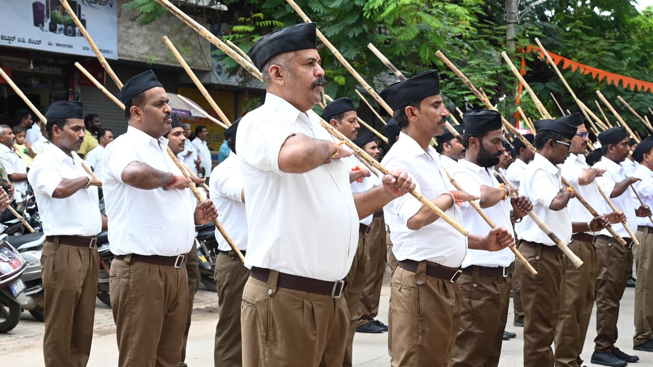 ದಾವಣಗೆರೆಯಲ್ಲಿ ಶನಿವಾರ ರಾಷ್ಟ್ರೀಯ ಸ್ವಯಂಸೇವಕ ಸಂಘದಿಂದ ವಿಜಯದಶಮಿ ಪ್ರಯುಕ್ತ ಪ್ರಮುಖ ರಸ್ತೆಗಳಲ್ಲಿ ಪಥ ಸಂಚಲನ ನಡೆಸಲಾಯಿತು.