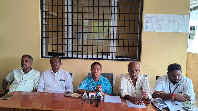 10ಕೆಆರ್ ಎಂಎನ್ 12.ಜೆಪಿಜಿಗ್ರಾಪಂ ಆವರಣದಲ್ಲಿ ಅಧ್ಯಕ್ಷೆ ಹಾಗೂ ಸದಸ್ಯರು ಪತ್ರಿಕಾಗೊಷ್ಠಿಯಲ್ಲಿ ಮಾತನಾಡಿದರು.